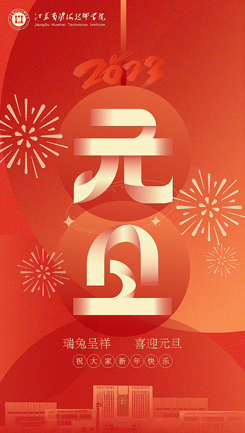 值此辞旧迎新之际,江苏省淮海技师学院向全体教职员工、同学们、家长朋友们致以诚挚的问候!向长期以来关心、支持学院发展的各级领导和社会各界人士表示衷心的感谢!祝大家在新的一年里工作顺利,万事如意!