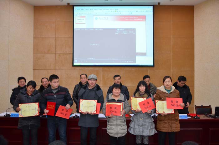 会上,姚嵩山书记宣读了《淮海技师学院关于表彰裴启军等44名优秀教职工的决定》和《关于表彰淮海技师学院2011-2012学年第一学期教师论文获奖人员的决定》;院领导为获奖教职工颁奖;部门负责人代表与庞志勤院长签订2012年目标责任状;中层干部代表作经验交流;新上任同志作表态发言。