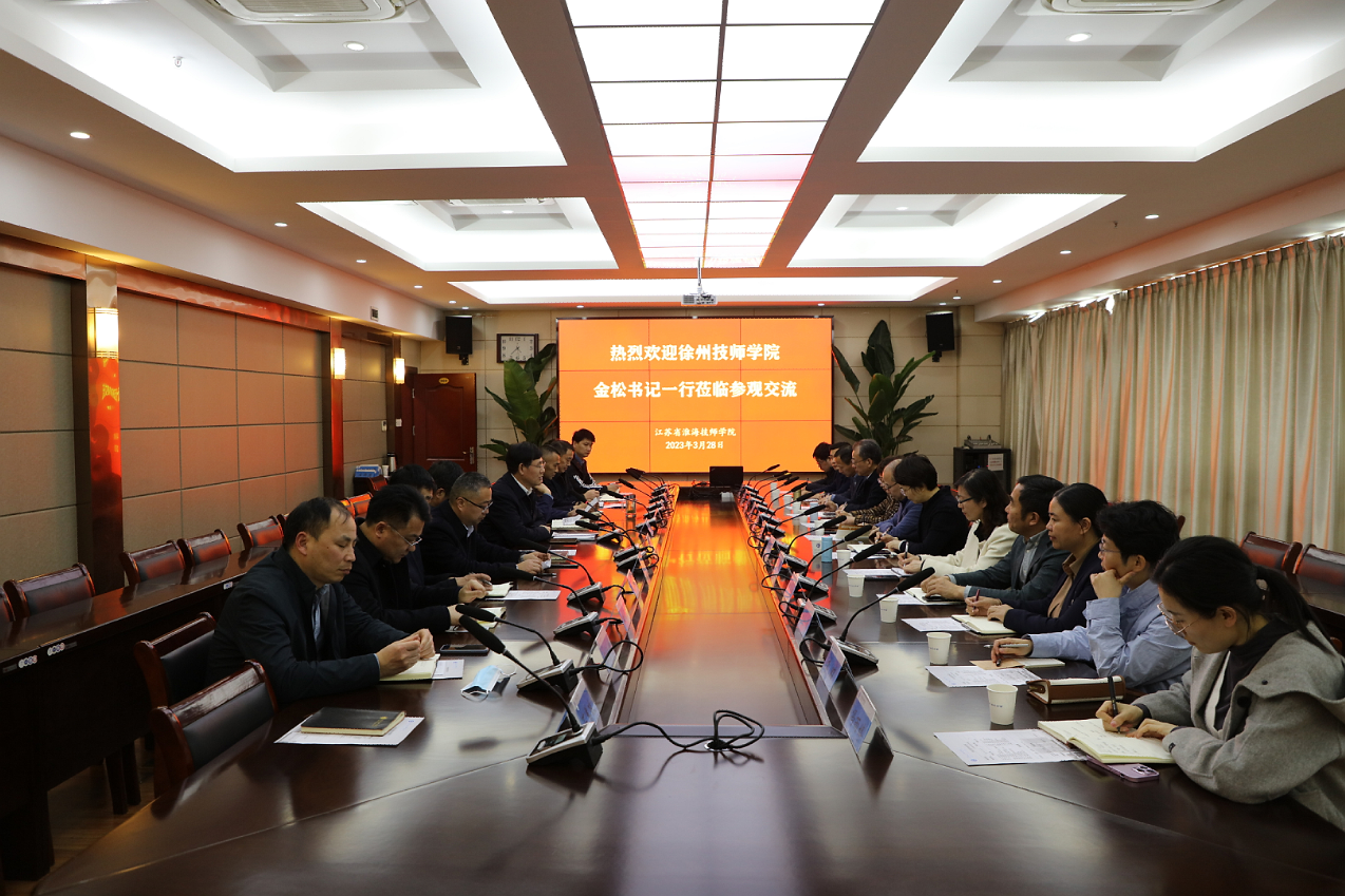 3月28日,江苏省徐州技师学院党委书记金松、党委副书记张文枚等一行到我院参观交流。学院党委书记、院长李军率党委班子成员及相关部门负责人参加座谈交流。