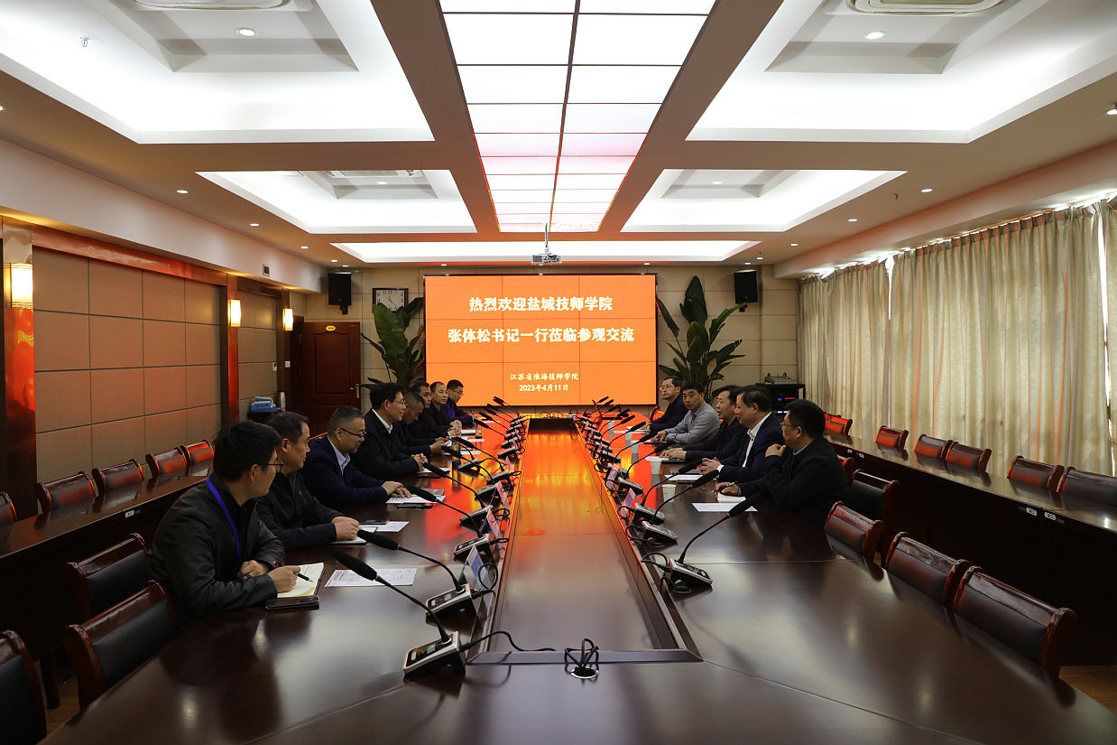 4月11日,江苏省盐城技师学院党委书记张体松一行到我院参观交流。学院党委书记、院长李军率党委班子成员及相关部门负责人参加座谈交流。