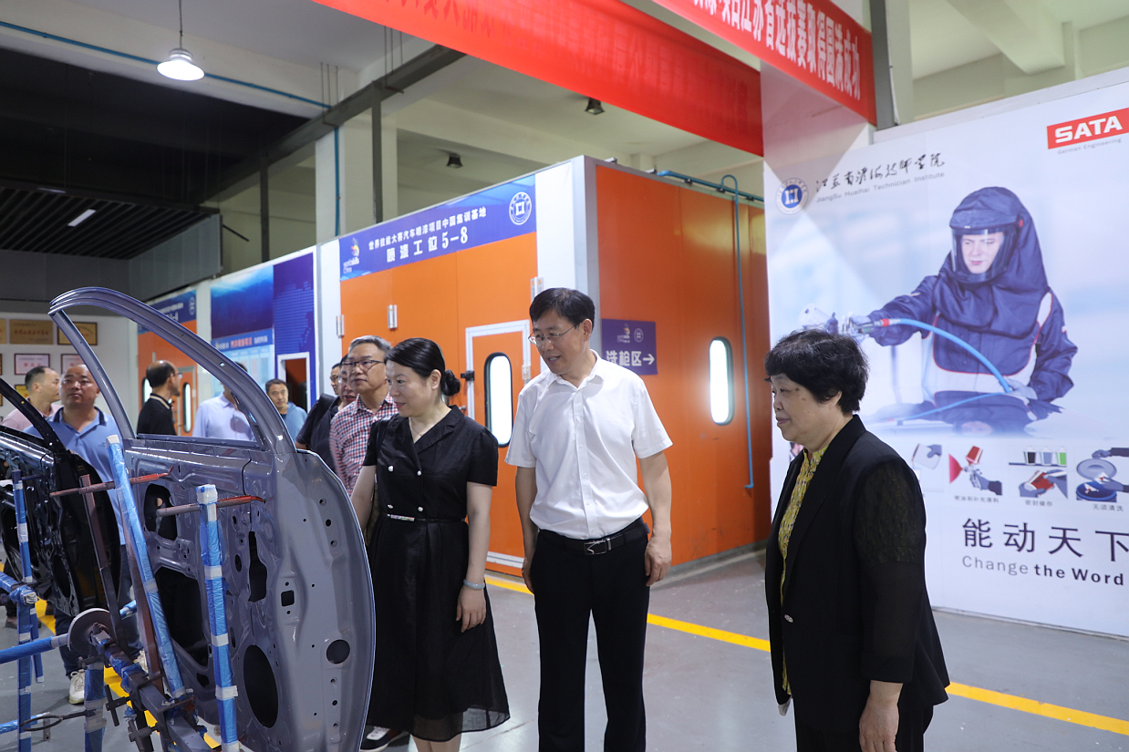 汪春慧一行参观了我院校园环境、校史馆、商贸旅游实训中心、江苏历史经典产业特色班、机械加工实训中心、数控加工实训中心、国家级技能大师工作室、世界技能大赛汽车喷漆项目中国实训基地、国家产教融合机器人实训中心以及各产业学院等地,对我院办学水平和办学成果给予了高度评价。