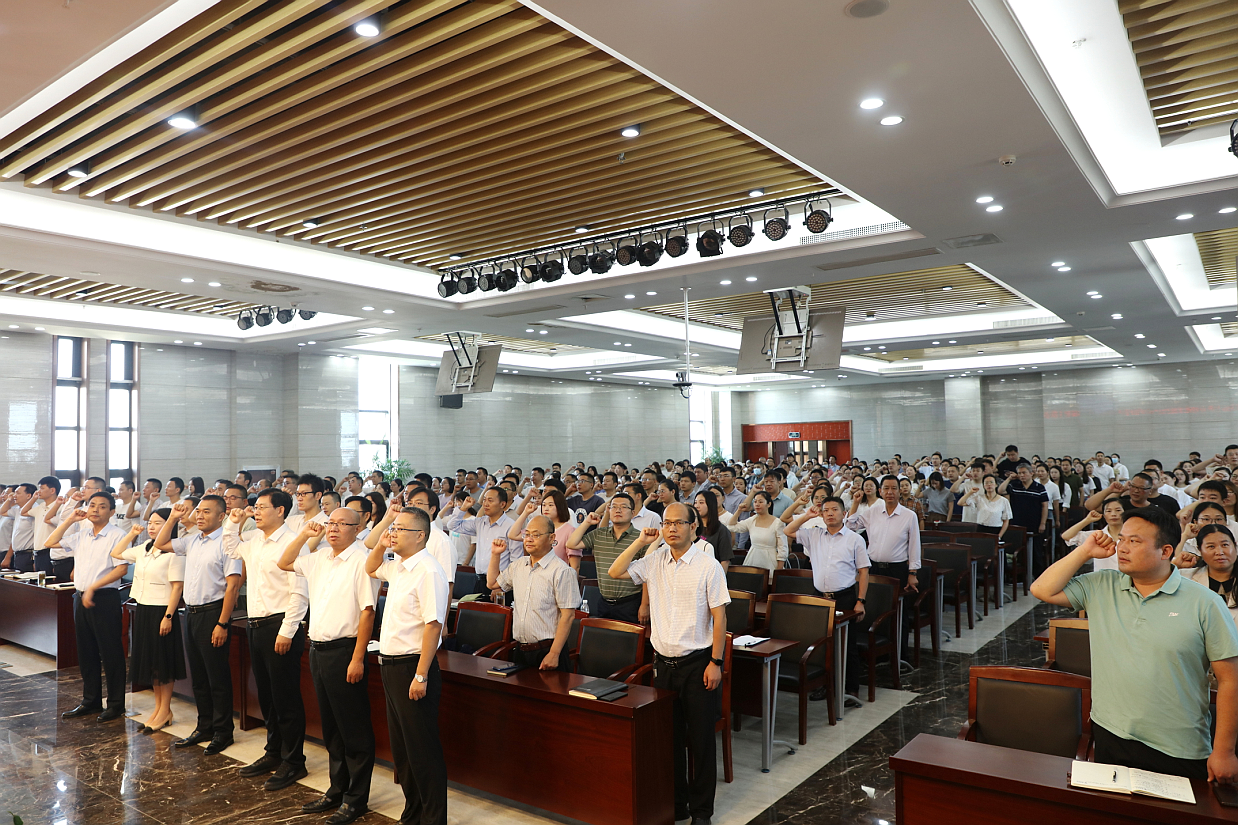 会前,院领导带领全体教职工重温人民教师誓词,让大家再次感受教育的重要性和教师责任的重大,提醒大家,教育不仅仅是一份工作,更是一种责任和使命。作为教师,不仅要传授知识,更要引导学生树立正确的价值观,培养他们的社会责任感。