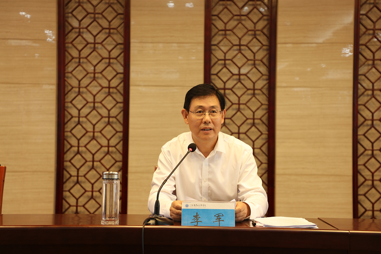 李军总结回顾了上半年学院在服务能力、内涵建设、人才培养、立德树人、培训认定、党建引领等方面工作的亮点和取得成绩,对各部门的工作给予充分肯定,对表现突出的部门提出了表扬,希望大家再接再厉,争取更优异的成绩。