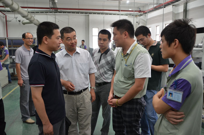 汇报会后,王一民在庞志勤院长陪同下,参观了学院实训中心。参观过程中,庞志勤院长就学院实践教学、校企合作、社会服务、招生就业等方面做了具体介绍。考察组一行还来到苏宿工业园区可成科技有限公司,实地了解我院校企合作开展情况,并与企业负责人做了深入的交流。