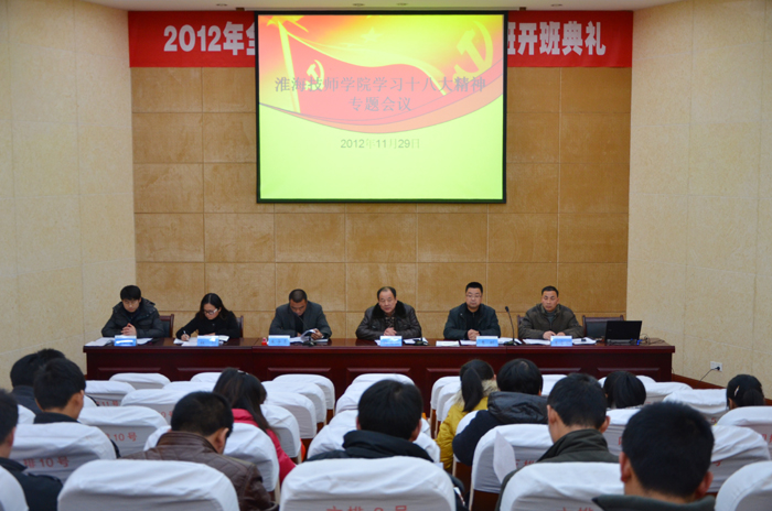 此外,为了深入学习宣传贯彻党的十八大精神,11月29日下午,学院党组在第二阶梯教室召开了学习十八大精神专题会议,党总支书记姚嵩山、各支部书记、全体党员、预备党员、入党积子参加了会议。