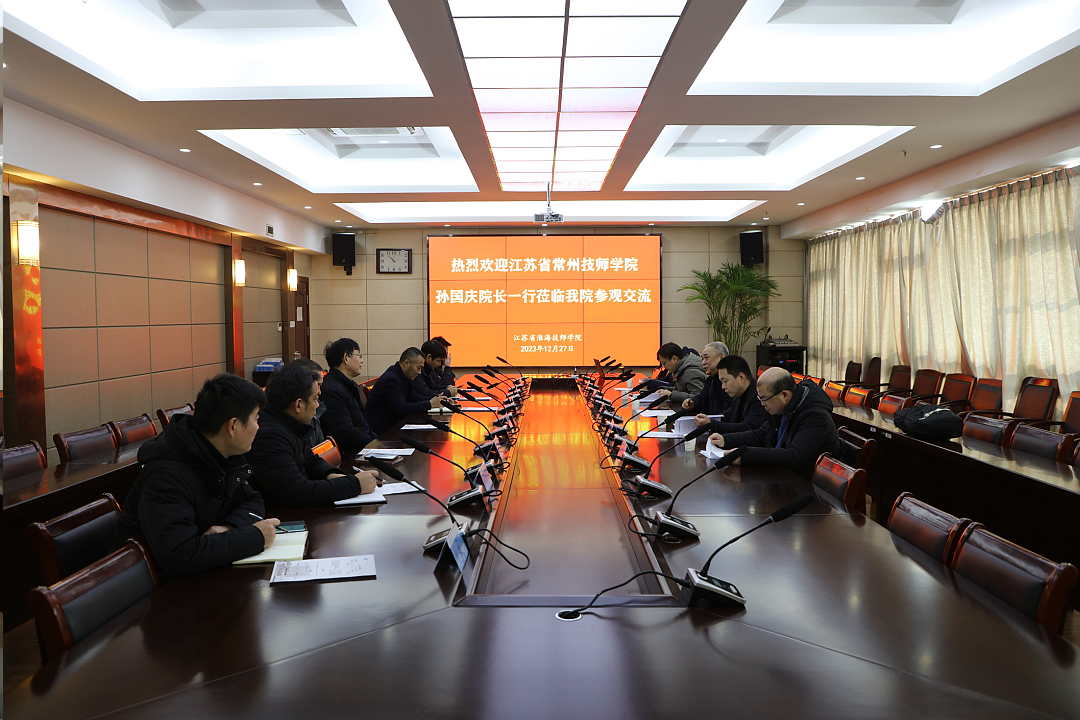 12月27日,江苏省常州技师学院院长孙国庆一行到我院参观交流。学院党委书记、院长李军,副院长朱宇亮及相关部门负责人参加座谈交流。