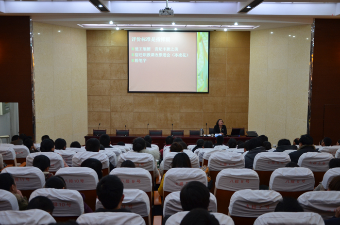 沈教授是职教语文领军人物,任宿迁市职业教育语文学科中心教研组组长,被评为宿迁市教科研先进个人;多次参与市课堂教学评比工作,对说课、上课很有自己的研究心得,经验丰富。沈教授以“如何说好课”为主题,声情并茂地对说课作了全方位的深入解析;同时,紧扣教学,结合实例,从说课的环节、细节,到说课的内容组织一一做了指导。沈教授强调说课之前要多熟悉教材,这主要靠平时的经验积累;在准备的过程中要对学生课堂中会出现的情境进行预设;说课过程中的语言连贯程度要强。