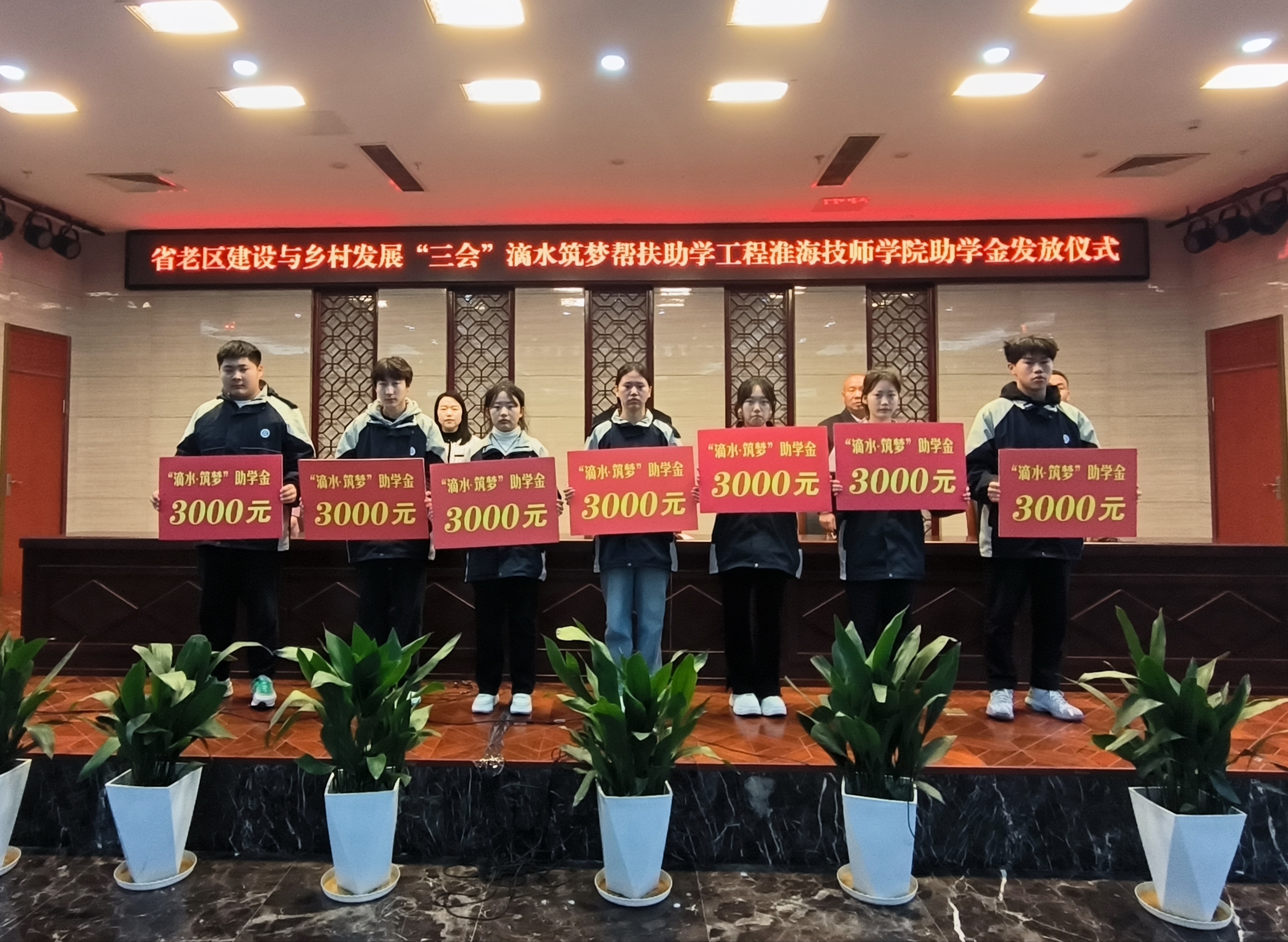 “滴水·筑梦”帮扶助学工程由省老区建设促进会、省乡村发展协会和省乡村发展基金会发起和实施、省国资委出资,旨在帮助困难学生完成学业、实现教育优先、扶贫扶志的公益助学项目。此次我院共有100名符合条件学生获得该项目助学金,每人每年3000元,连续资助三年。