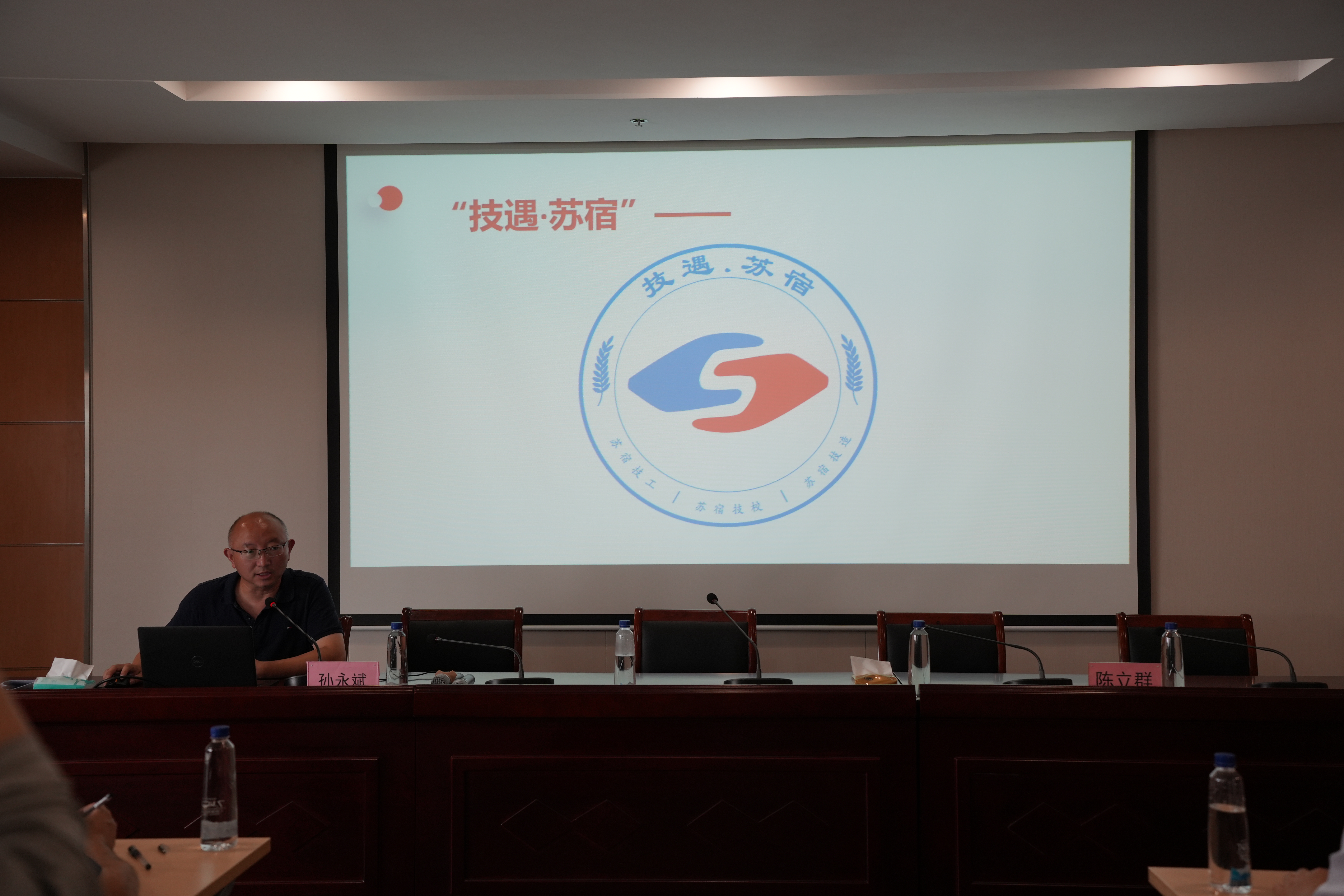 为进一步落实南北挂钩结对帮扶,全方位开展两校合作共建,切实推进苏州宿迁数字技能联合实训基地建设,8月11日至12日,我院一行40人远赴姑苏,与江苏省苏州技师学院同仁共同举行“技遇·苏宿”苏州宿迁技工教育发展暨数字技能基地建设论坛。江苏省人才继续教育指导服务中心副主任蒋金元出席论坛开幕式并讲话,江苏省苏州技师学院和我院两校领导班子、中层干部及部分骨干教师参加论坛。