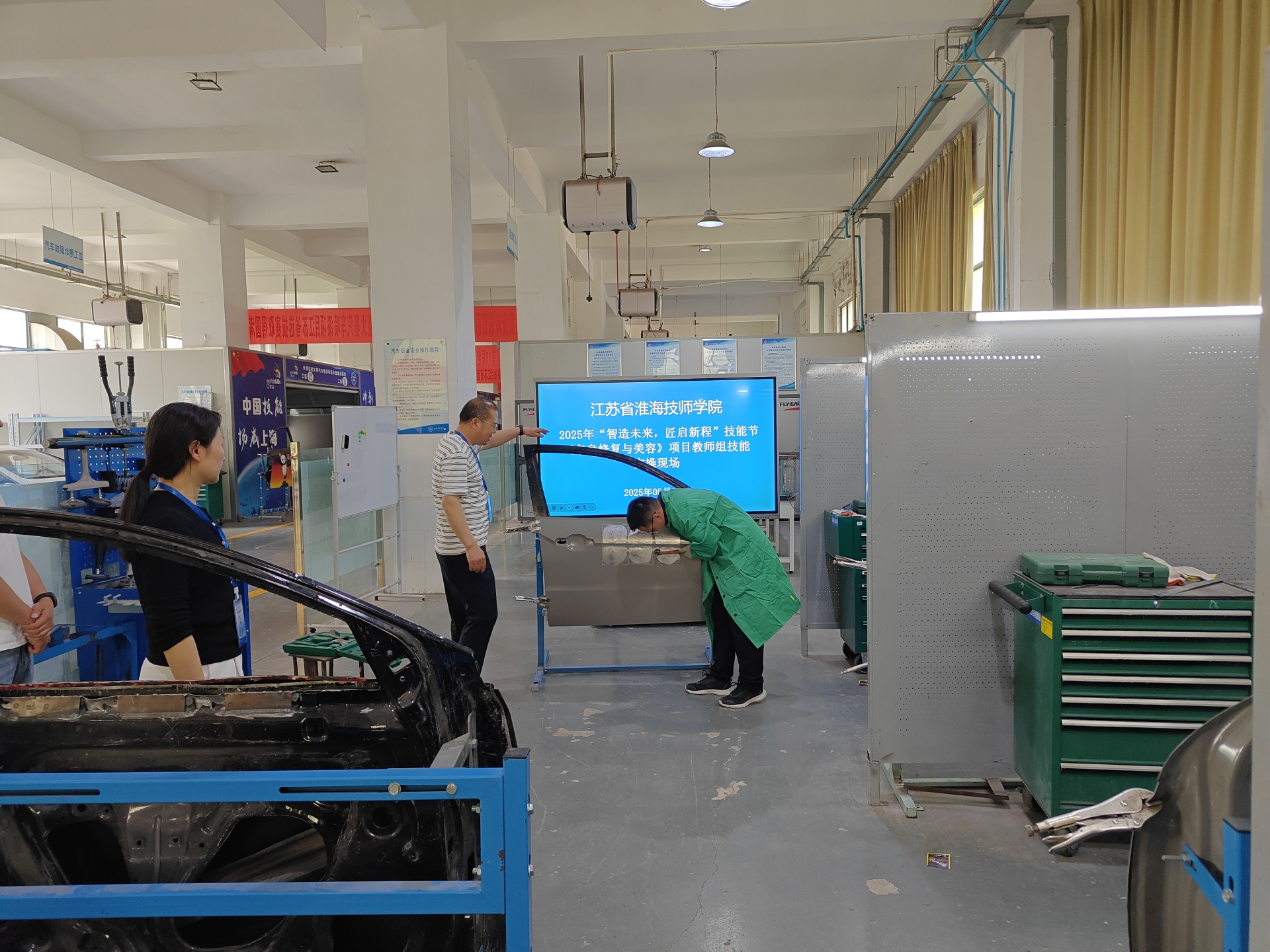 在比赛现场,气氛紧张而热烈。参赛教师们沉着冷静,凭借扎实的基本功和精湛的专业技能,全身心投入比赛。控制系统前,教师们熟练地接线编程调试,动作娴熟而精准;工业机器人操作区内,大家通过现场示教编程,精准操控机械臂完成复杂任务;物流服务赛场上,物料的精确组装、出料入库流程一气呵成;中式烹饪区,则弥漫着阵阵美食香气,一道道精美的菜肴在教师们手中诞生。在汽车车门表面修复赛项中,教师们先对受损表面进行清洁,再精细打磨,最后完成表面修复,使车门焕然一新。