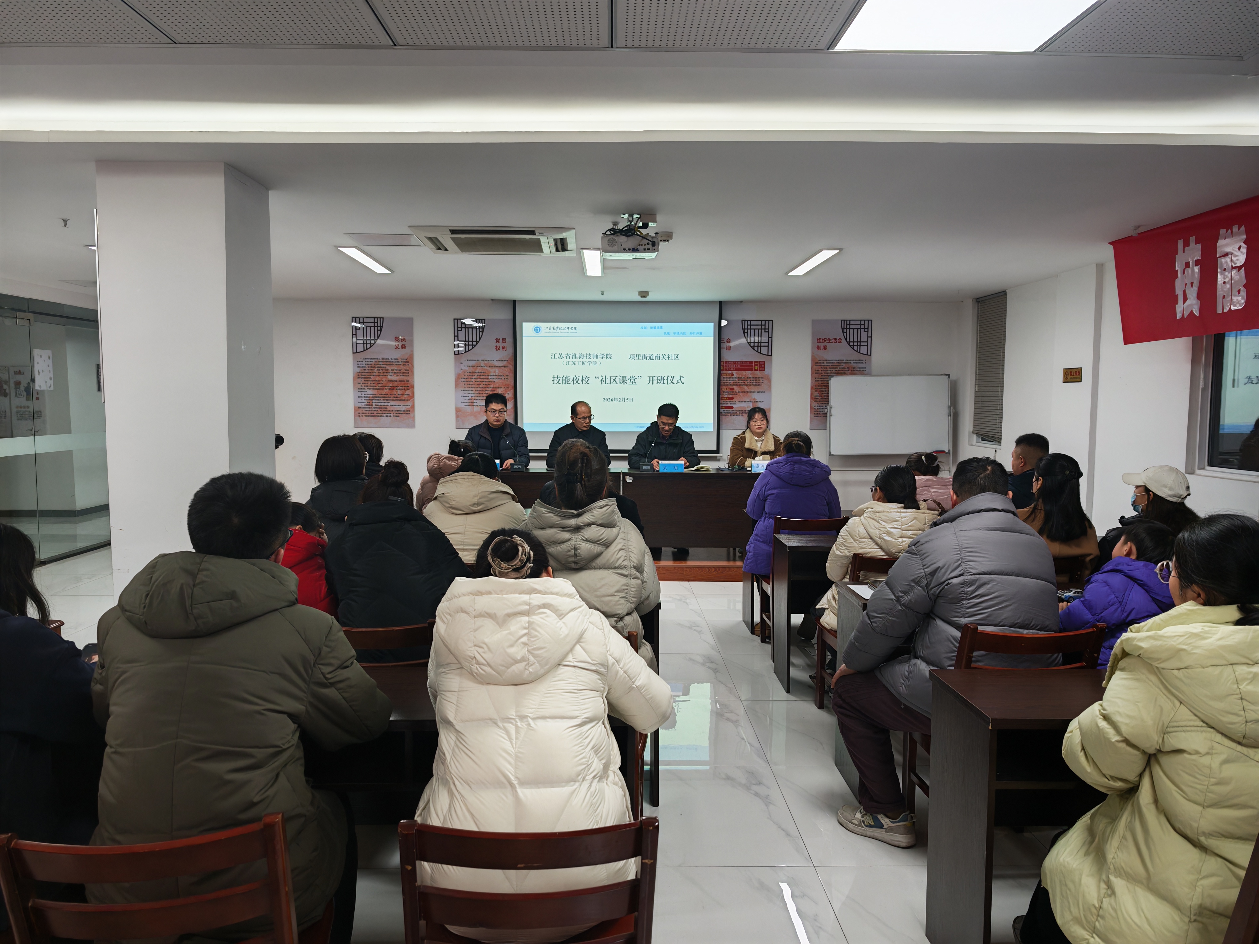 为深入推进“技能照亮前程”培训行动,2月5日晚,我院(江苏工匠学院)与宿城区项里街道南关社区联合开办的技能夜校“社区课堂”正式开班。此举旨在进一步延伸技能培训服务触角,破解社区居民“上班没时间学、想学没渠道”的难题,让实用技能培训走进基层,助力居民在家门口提升技能、拓宽就业增收渠道。