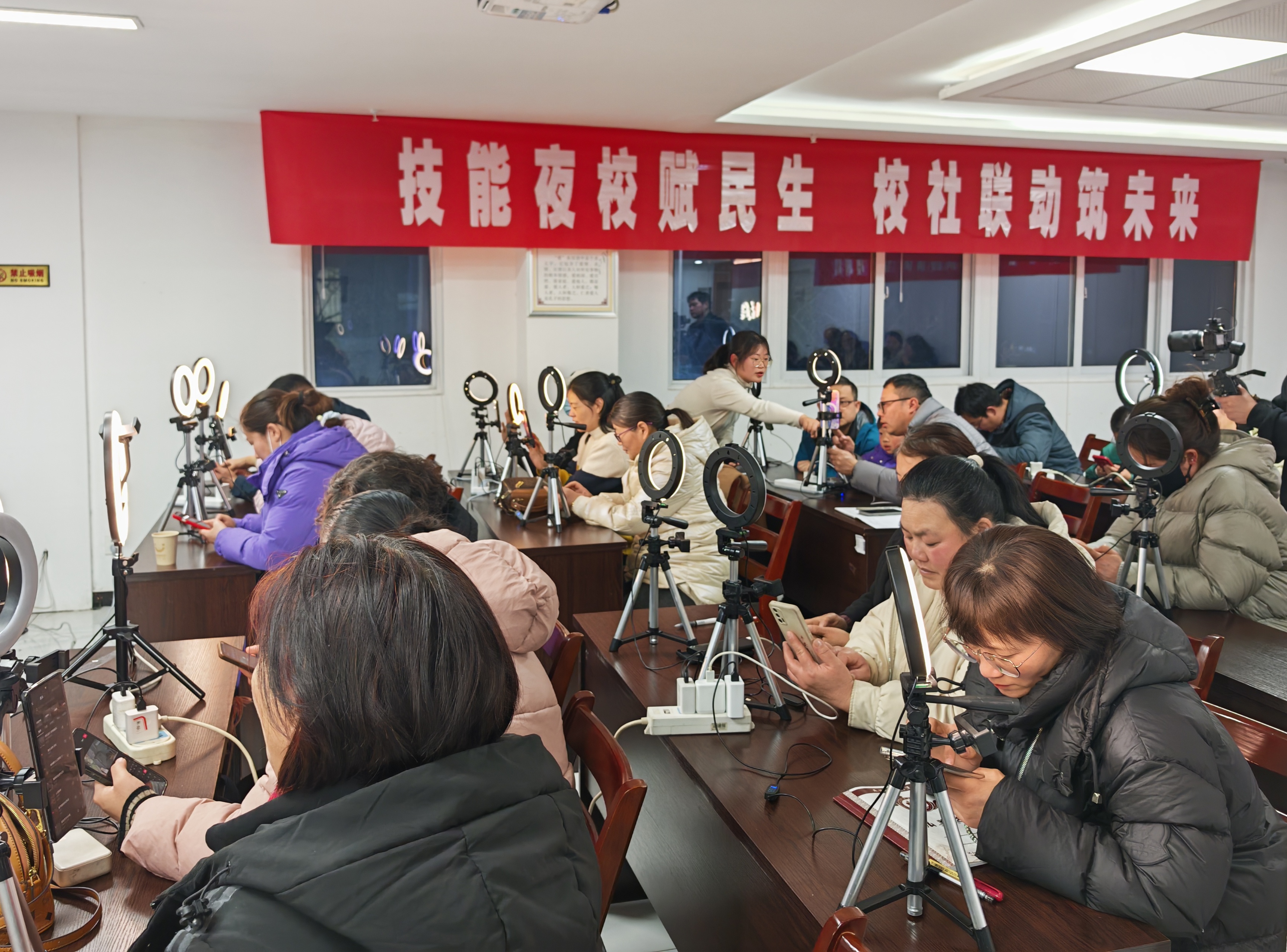 开班仪式结束后,30余名学员在授课老师的带领下,专注投入学习,认真钻研短视频直播运营、拍摄剪辑、发布推广等专业知识,开启技能提升之旅。