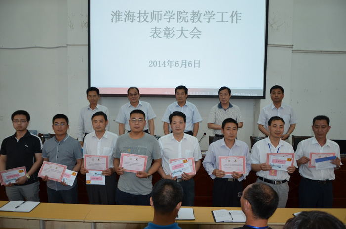会上宣读了淮海技师学院《关于表彰第三届创新大赛获奖教师的决定》、《关于表彰2014年公共基础课“两课”评比获奖教师的决定》、《关于表彰2013—2014学年度第二学期示范课评比获奖教师的决定》、《关于表彰第七届“尼吉康杯”操作技能大赛获奖教师的决定》、《关于兑现2014年对口高考奖金的决定》、省总工会《关于确认“江苏省五一巾帼奖状(奖章)”和“江苏省五一巾帼标兵岗(标兵)”的决定》等文件,现场对获奖人员进行了表彰奖励。