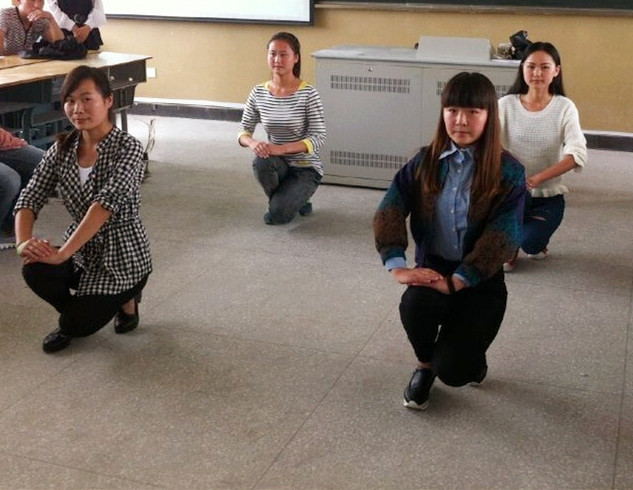 在本次活动中,同学们都能够认真的进行形体训练,并基本掌握了日常及正式场合的坐、站、行、蹲的礼仪规范。