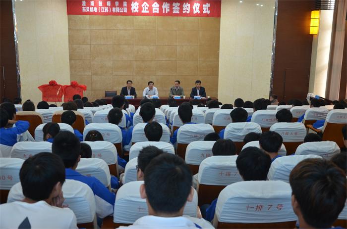 学院将与东贝机电(江苏)有限公司密切合作、取长补短、资源共享,实现校企互利共赢;在专业建设上,突出实践教学,着力培养学生的职业核心能力,学院以企业为培养学生第二课堂,企业在职工技能提升上以学院为课堂,共同发展,采取“订单式”培养,设立冠名班,打造职教品牌。