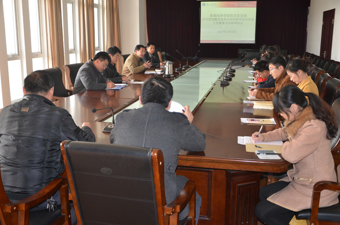 11月14日,淮海技师学院机关党支部在图书馆第一会议室召开支部党员大会,深入学习贯彻魏国强书记调研指导机关党建工作时的重要讲话精神,学院党委委员、副院长张兵营参加会议。