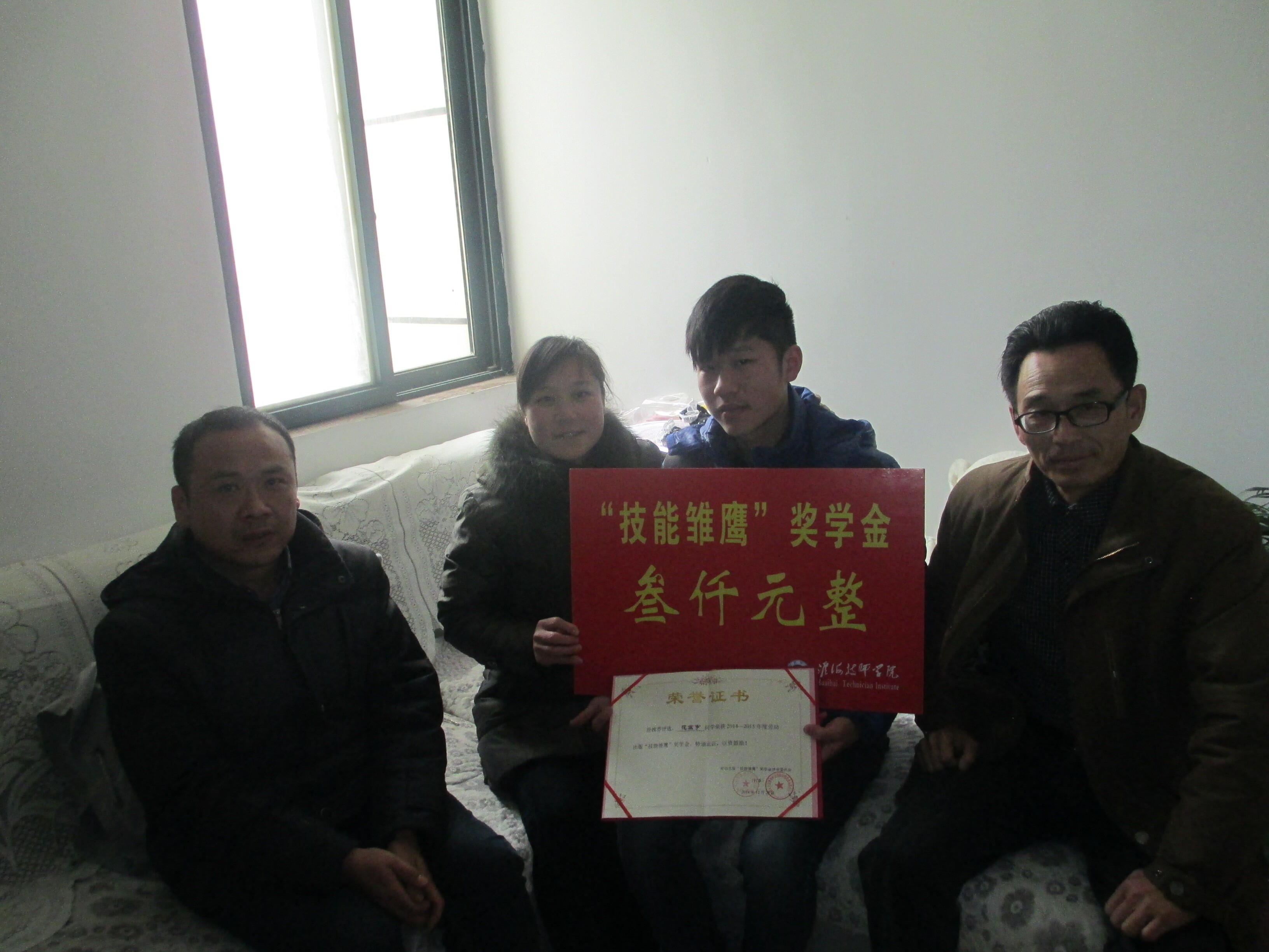 近日,经过学院层层推荐选拔,花宏宇作为我院优秀学生代表,获得了2014-2015劳动出版“技能雏鹰”助学金,助学金3000元。
