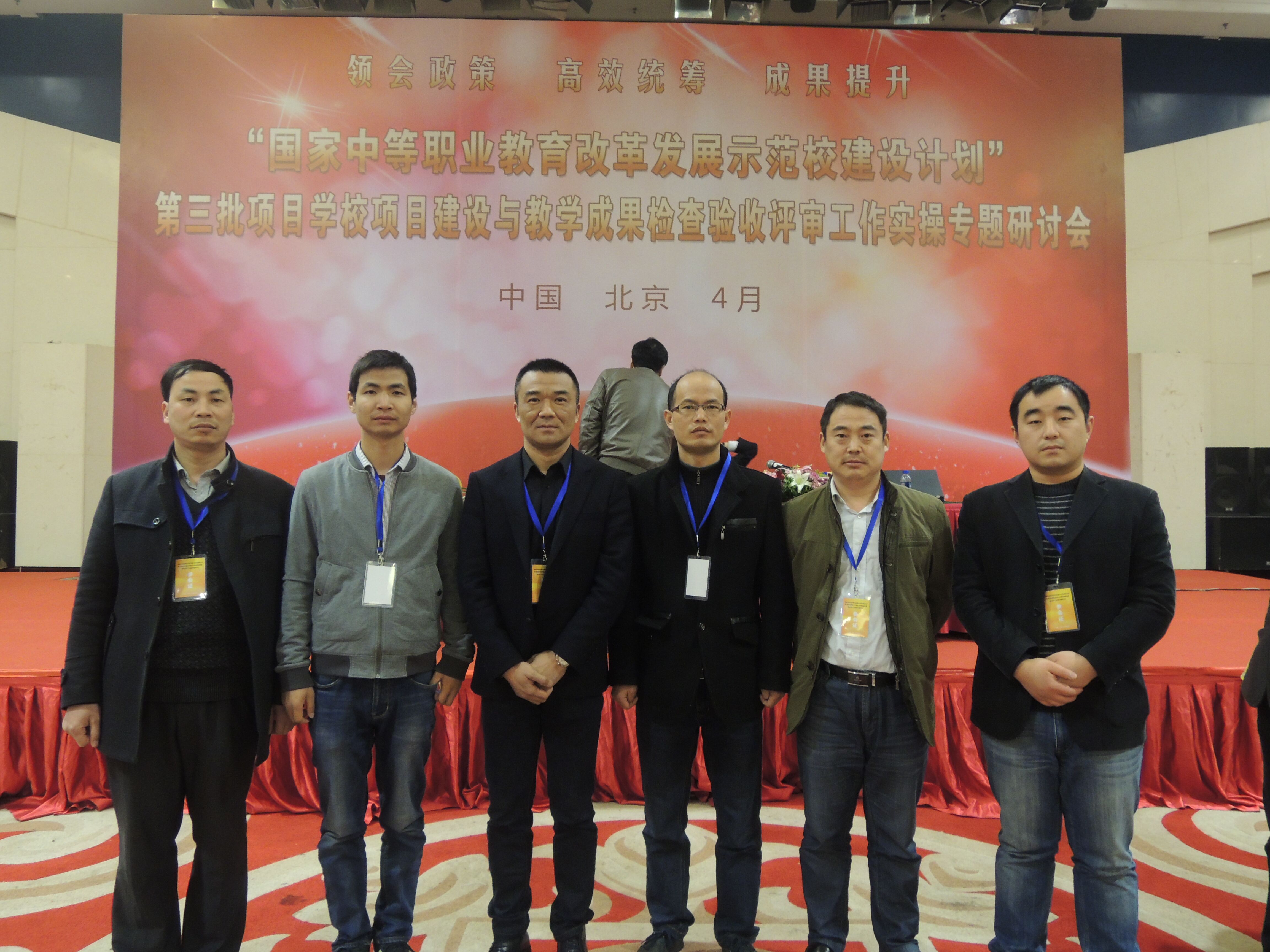 为全面做好我校国家示范校后期的建设收尾工作,迎接上级有关部门对我校示范学校建设工作的验收,学校派遣朱宇亮、王永宜、于悟然、王言明、陈伟、汪笑等六位项目组组长于4月11日至13日赴北京参加由中国职业技术教育学会主办的“国家中等职业教育改革发展示范校建设计划”第三批项目学校项目建设与教学成果检查验收评审工作实操专题研讨会。