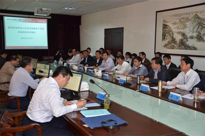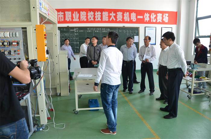 我国国示范校项目自2013年4月启动,截至目前已完成全部建设任务,此次专家组莅临验收主要是全面检查两年来国示范校项目建设情况及专项资金使用情况,重点检查项目为机电、数控、汽修、模具、计算机5个重点专业和数字校园、社会培训两个特色项目。13日下午验收汇报会在图书馆会议室举行,专家组首先听取了张兵营副院长对学校整体项目建设总结报告,以及7个项目组负责人分别所作的项目组总结报告,并观看项目建设专题片,随后专家组进入实训中心现场检查各专业实训室建设情况。14上午,专家组登陆专题网站逐项检查资料,并询问项目组负责人。