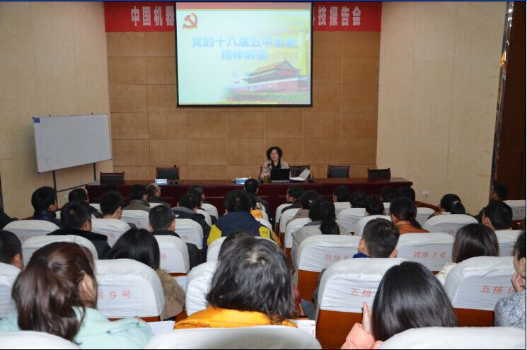 为让大家更深刻认识和学习党的十八届五中全会精神,张部长分别从准确把握“十三五”时期我国发展的指导思想、基本原则、目标任务,深刻认识“五大发展理念”的深刻内涵,全面落实“十三五”期间经济发展各项任务的重大举措和“十三五”将给我们的生活带来哪些影响四个方面给我们详细解读了党的十八届五中全会精神,及会议结束以来国家、省市里一些重要政策的变化,理论结合实际,立意深远,发人深思。让大家更清楚的明白“十三五”的重要意义,为学院顺利完成 “十三五”发展规划提供了强大的思想武器和行动指南。
