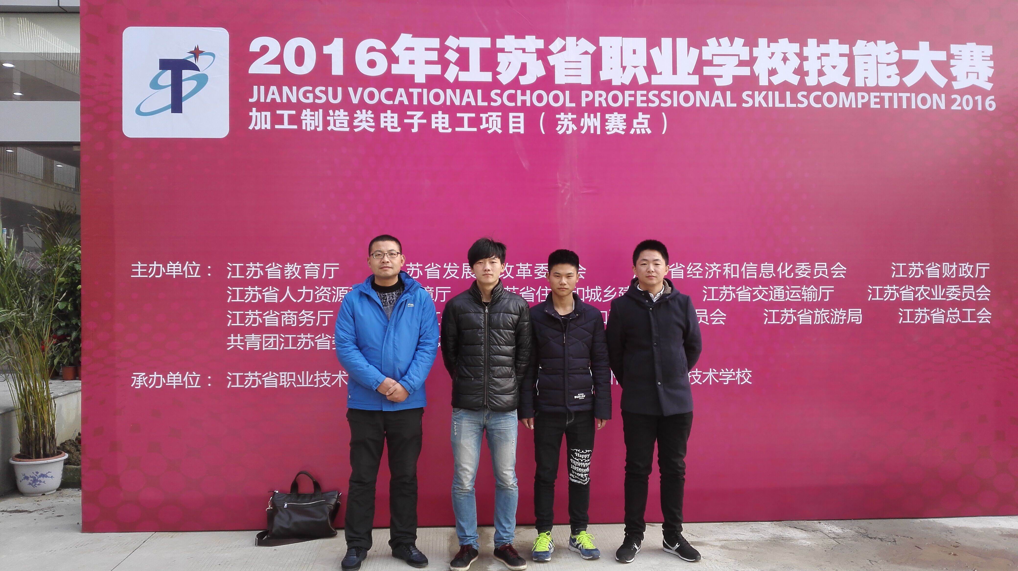 2015年宿迁市职业学校技能大赛后,经宿迁市教育局批准,我院商贸系电气安装与维修项目组参加2016年全省职业学校技能大赛。我院选手不负重望,比赛前不畏艰难、刻苦训练,比赛时通力协作、奋力拼搏,终在省赛夺得银牌。