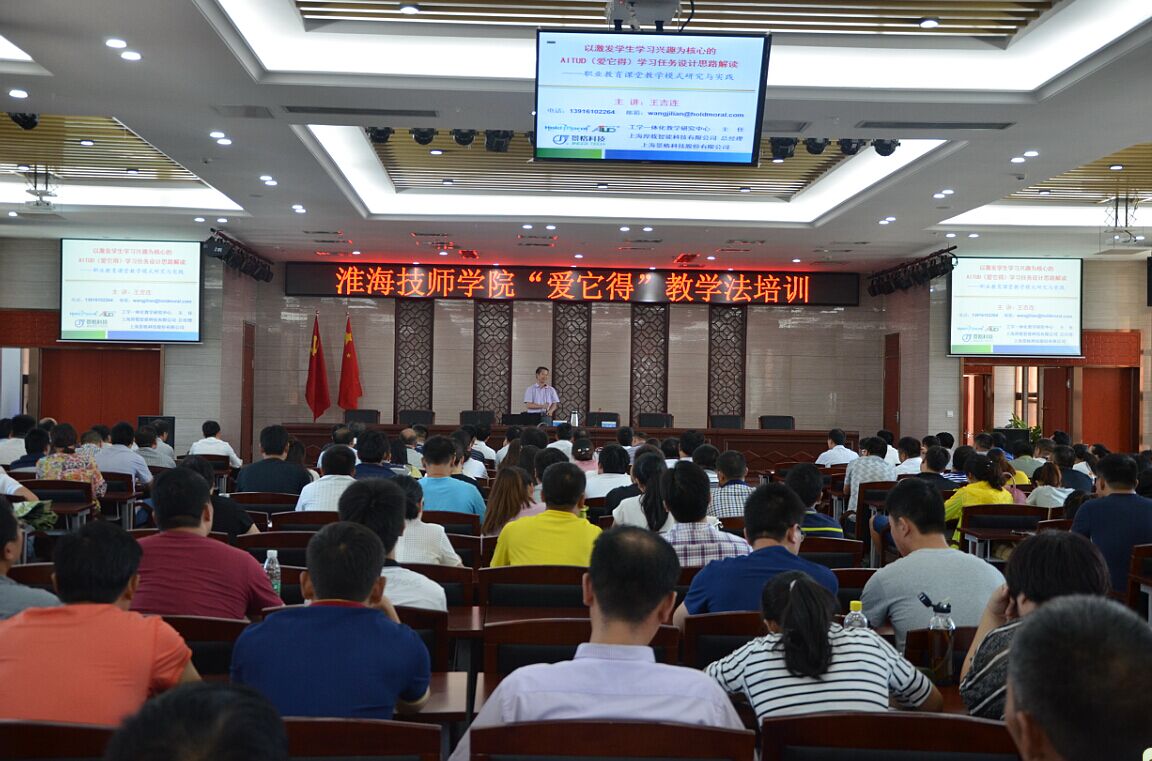 为进一步推进我院教学模式改革,打造“实践课堂”,提升人才培养质量,8月27日下午,我院特邀请上海厚载智能科技有限公司总经理、工学一体化教学研究中心主任王吉连到校开展AITUD(爱它得)教学法培训,院领导及全体教师参加了培训会。