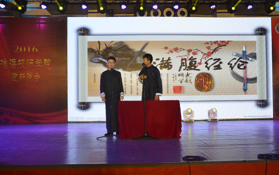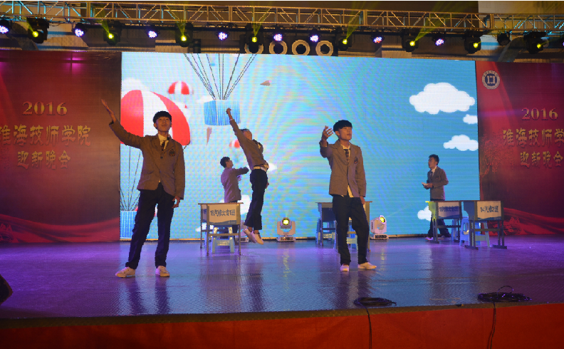 晚会中,舞台大屏幕上还播放了记录着各系部学生们学习、生活及历练的视频短片,每个精彩瞬间都燃起了同学们对走进淮海技师学院以来点点滴滴的回忆。