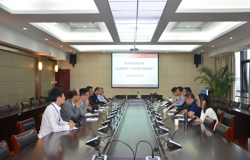 9月29日下午,镇江扬中市人社局副局长蒋长春一行五人来我院开展合作交流。分管同志陈元文热情接待了来访客人,并主持召开了合作交流座谈会,党政办公室、培训处、教务处、招生就业处和相关系部负责人参加了座谈会。