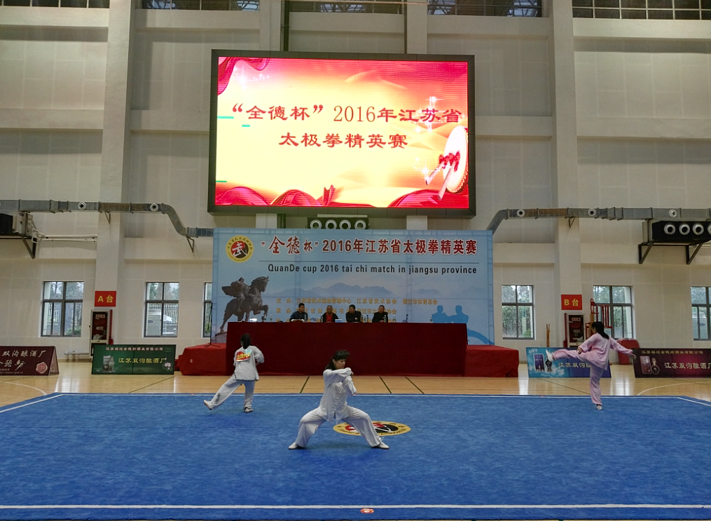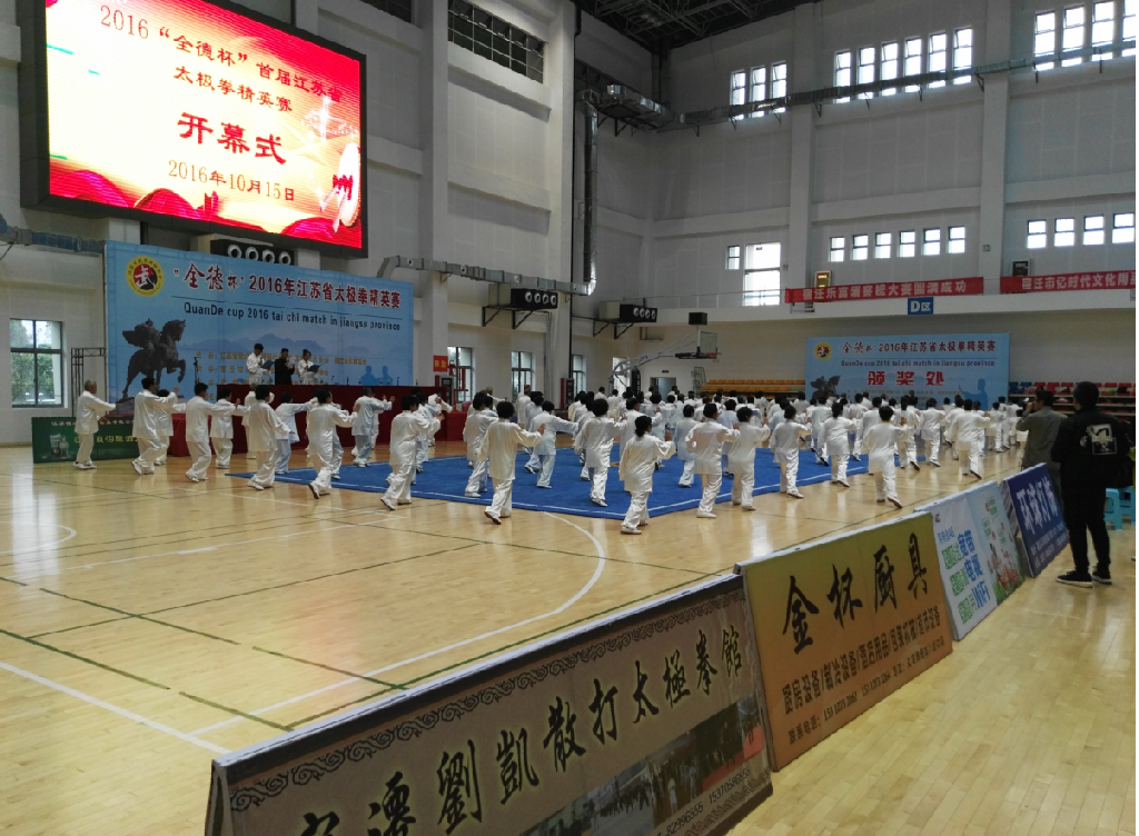 10月15日,由我院承办的首届“全德杯”2016江苏省太极拳精英赛在学院体育馆盛大开幕。本次比赛为期2天,汇集省内37支代表队参赛,安徽宿州代表队也派出强大阵容参与其中。不同门派的近600名太极运动健儿在此展示身手,切磋技艺,竞争荣誉。