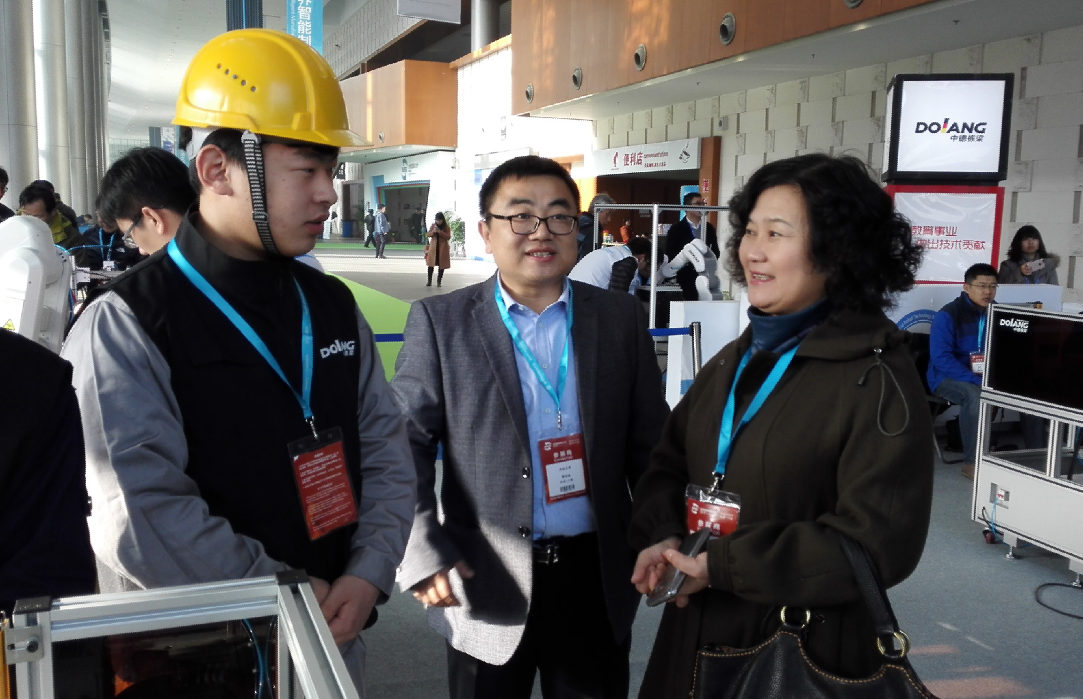 随后,张部长与山东栋梁集团总经理陈伟巡视了比赛现场,并认真观摩了选手们的竞技现场。张部长还详细询问机器人应用实训系统的原理,并就工业机器人未来发展趋势进行了探讨。