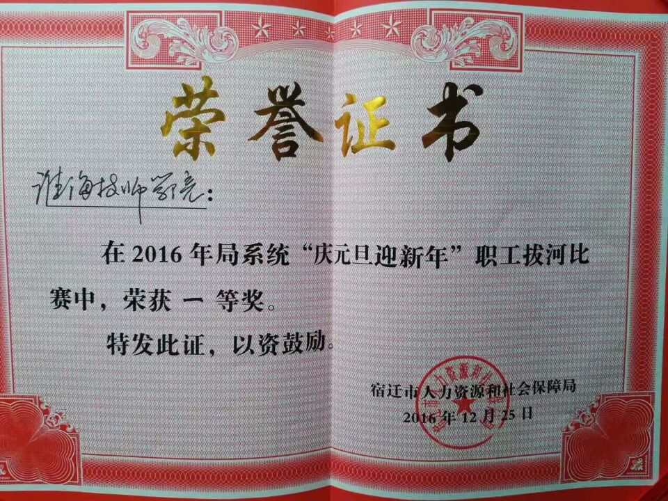 在上午的细雨中,经过简短的开幕式,局党组书记孙登怀宣布活动开始。拔河比赛每队10人,共有局机关代表队、社保中心代表队、就管中心代表队、人才信息联合代表队、考鉴中心代表队、淮海技师学院代表队和监察仲裁联合代表队7支队伍参赛。比赛中,各个参赛队伍都表现出了顽强意志和拼搏精神,既赛出了水平,又赛出了风格,充分体现了系统干部职工的团结合作精神和向上进取活力,赢的人雀跃欢呼,输的人也喜笑颜开。经过激烈的竞赛和公正裁决,最终,我院代表队凭借强劲的实力及密切的配合获得一等奖。