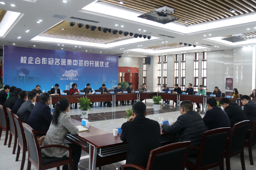 在签约仪式上,张兵营院长代表学院与企业负责人分别签署了校企合作协议,还授于19家国内知名企业“班级冠名权”,对2017级学院部分优势专业实行班级冠名,与企业共同制定人才培养方案、合作开发实用教材、共享实习实训基地,注重工学结合,切实提高学生的实践动手能力和职业素养,为学生将来实现高水平就业奠定坚实的社会基础。