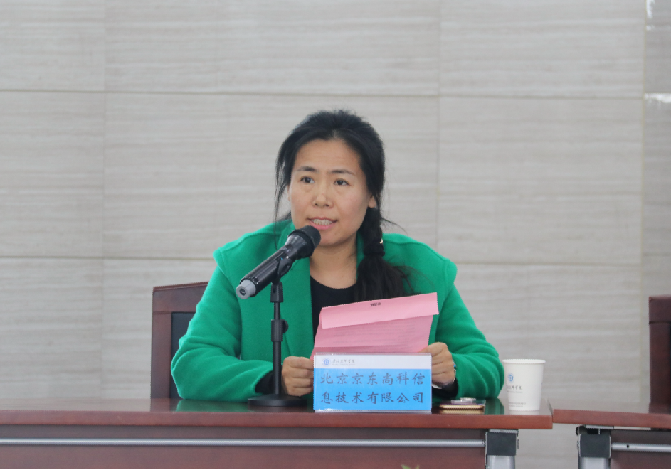 随后,京东X事业部无人机研发中心负责人刘艳光作为企业代表发言,她表示,此次与我院签订合作协议,除了开设冠名班外,还将与学院合作建立“京东电商学院无人机教学实验中心”,这将是京东全国第一个无人机教学实验中心,也是京东校企合作的又一创新典范。她强调,京东一直秉承着正道成功的理念,她希望学生们能够通过学习无人机相关知识和技能,找到自己合适的工作岗位,未来取得自己希望的成功。