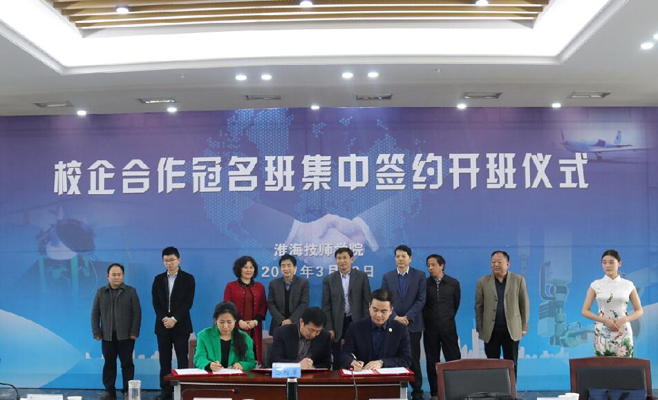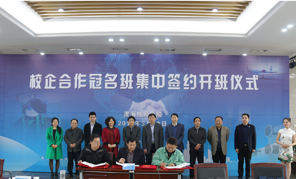 仪式上,张部长首先代表院党委向长期以来关心支持学院发展的各级领导和企业以及为本次活动的顺利开展付出辛勤劳动的同志们表示衷心的感谢,向前来参加签约仪式的企业代表表示热烈欢迎。她指出,近年来,淮海技师学院围绕“三服务三促进”活动要求,积极探索技能人才培养新模式,推进技能人才队伍建设,取得了一定的成效。2016年,学院与企业开展冠名班15个,为企业订单式培养技能人才近千人,有效满足了地方企业对技能人才的需求,同时促成了可成科技等大型企业落户我市,实现了学生通过技能高质量就业,打造了淮海技师学院技能人才培养的亮点招牌。2016年,学院还获批国家发改委职业教育产教融合工业机器人项目,为宿迁市唯一一家,全省也只有三家。她强调,全年以来,学院围绕市委、市政府中心工作部署,从人社系统服务企业、服务发展的角度出发,围绕我市“双新一特”产业体系规划和市人社局关于订单招工、订单培养、订单服务的“三订”举措,经过充分酝酿、协商,与京东合作开设无人机应用技术班、与可成合作开设工业机器人智能制造班、与中电熊猫集团合作开设机电一体化班、与南京名爵合作开设新能源汽车班、与江苏连通教育合作开设电子商务班,与娃哈哈合作开设机电一体化班等,校企合作冠名班达19个,订单培养人数达1100人,这些学生全部由校企双方共同培养,经过考核,毕业后将直接进入合作企业实现高位就业,真正实现“学技能到淮海,成就乐业发展新未来”的目标。校企通过共建课程体系、共建实训基地、共培双师队伍、共同评价管理、共促招生就业、共同技术研发的方式满足企业对高素质适岗型技能人才的需求。