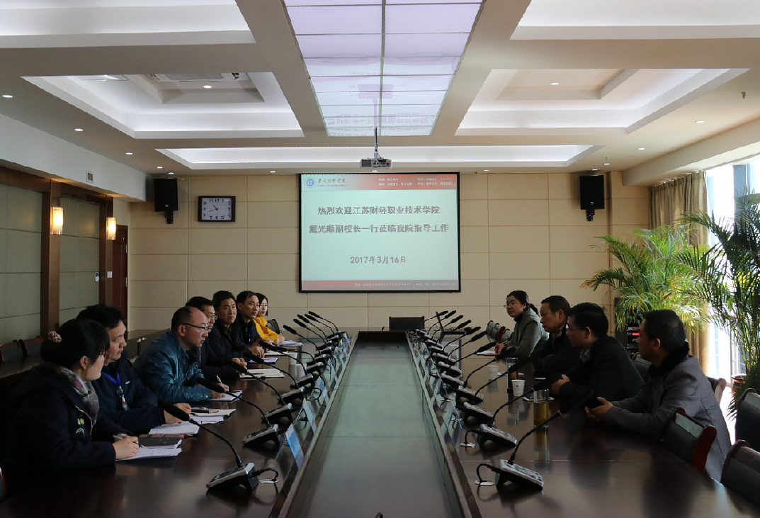 3月16日,江苏财经职业技术学院副校长戴光顺一行4人来我院调研考察。我院党委委员、副院长张兵营,分管同志陈元文热情接待了客人,教务处、学工处及综合高中部负责人及相关工作人员一同参加了交流活动。