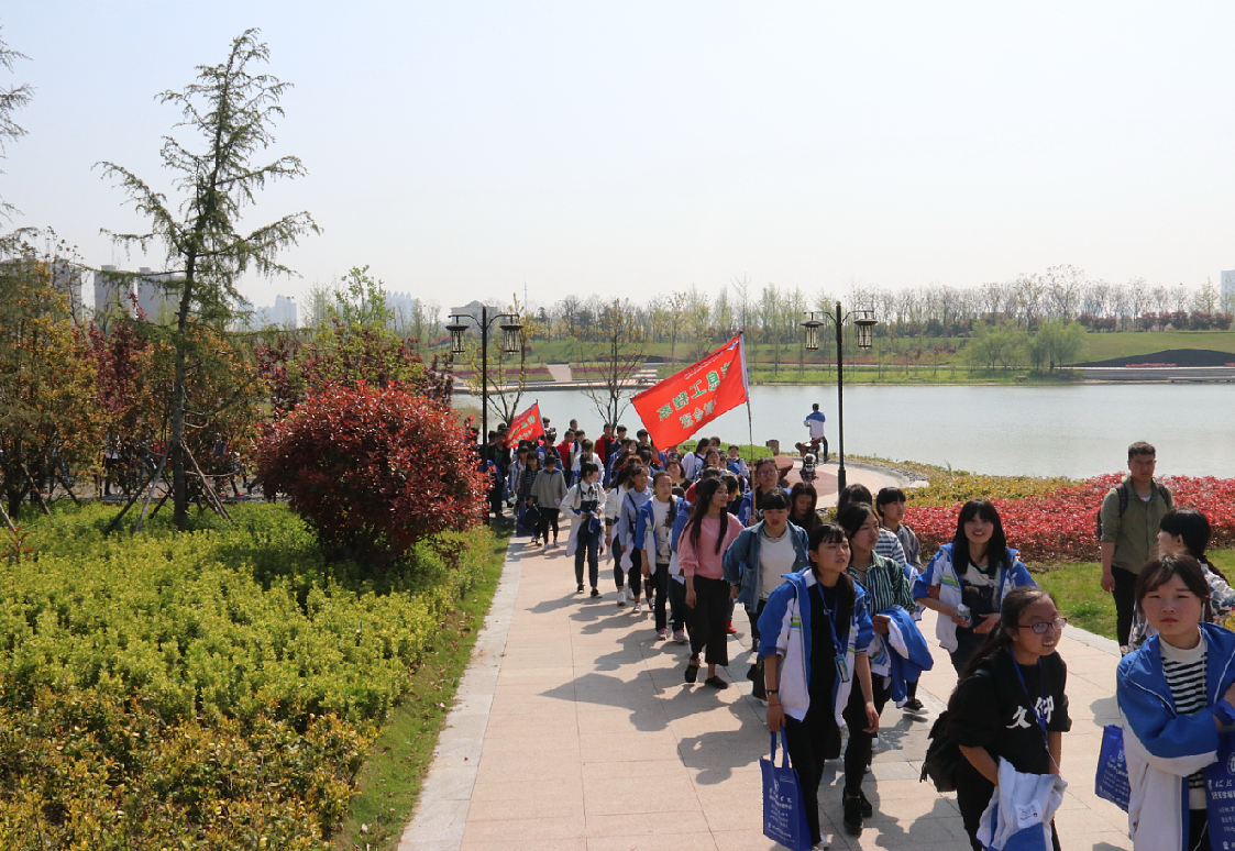 学院简短的出发仪式后,满载着笑声、歌声的师生队伍徒步驶向了朱瑞将军纪念馆和印象黄河景区。一路上,校旗、系旗和班旗随风飘扬,每个班级排成二个纵队,在老师们的陪伴下,有序前行。到达朱瑞纪念馆后,同学们通过讲解员的细致讲解,观看了纪念馆内陈列的战斗器材、文字注解、战斗实况模拟等,进一步了解了战争年代朱瑞将军“抛头颅、洒热血”的大无畏革命精神,有力地增强了同学们的爱国情感和对朱瑞将军的崇拜、敬仰之情。参观结束后,同学们纷纷表示,要以朱瑞将军为榜样,立志从现在做起,从自己做起,珍惜今天来之不易的幸福生活,努力学习,长大后为国家建设作出自己应有的贡献。随后,大家来到了印象黄河景区,此地景观设计围绕“古河印象”而展开,以“印象黄河”为主题,涵盖黄河精神、黄河人文和黄河生态三大方面,打造集生态、田园、文化、滨水特色于一体的“第一江山春好处”,实现“城河共兴”的发展目标。师生们被这里的风景深深的迷住了,绿植遍布,花儿娇艳,春的复苏,闲庭信步在整个景区,移步异景,应接不暇,漫步古黄河畔,登上双塔,俯瞰新区换新颜,让大家进一步感受到了宿迁的人文环境。