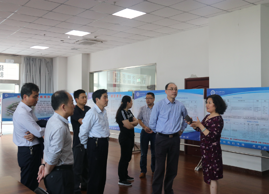 在张部长等领导的陪同下,省厅领导一行视察了校园、工业机器人实训中心、机械加工实训中心、数控加工实训中心、财会实训中心、汽车检测与维修实训中心、建筑实训中心、艺术实训中心等地。张部长首先对省人社厅多年来对我院发展建设的支持表示感谢,她从优秀的师资力量、一流完备的硬件设施、对接国际的教学体系、订单培养的培训特色、广受好评的社会培训等方面着重介绍了学院的办学情况与特色成果以及当前围绕内涵建设所建立的机制体制等创新举措。