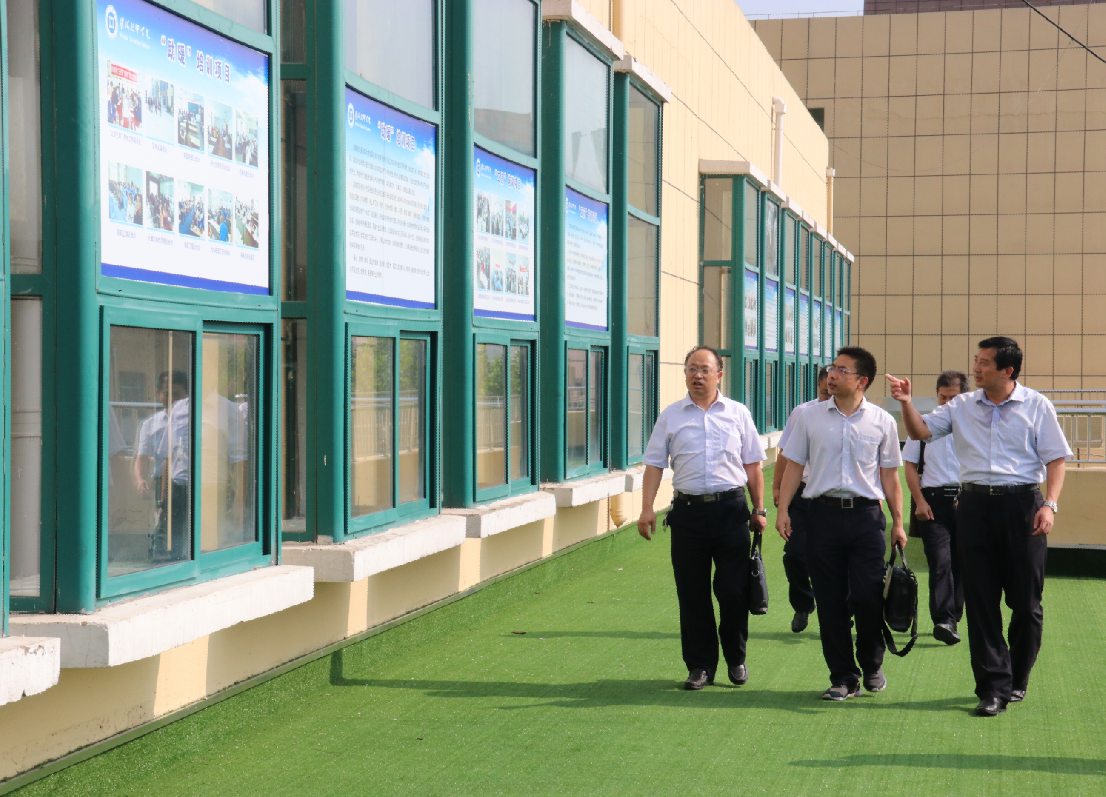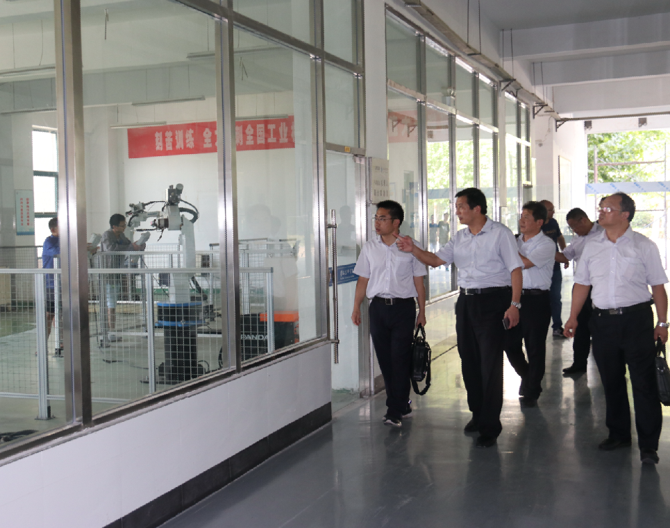 张耀武副处长一行参观了学院的校容校貌,实地考察了学院工业机器人实训中心、数控加工实训中心、机械加工实训中心、财会实训中心、汽车检测与维修实训中心、机电一体化实训中心、建筑实训中心等地。对我院的规划布局、建筑风格、校园环境、实训中心建设等给予高度赞赏,对我院近年来的办学取得的成绩给予了充分肯定。