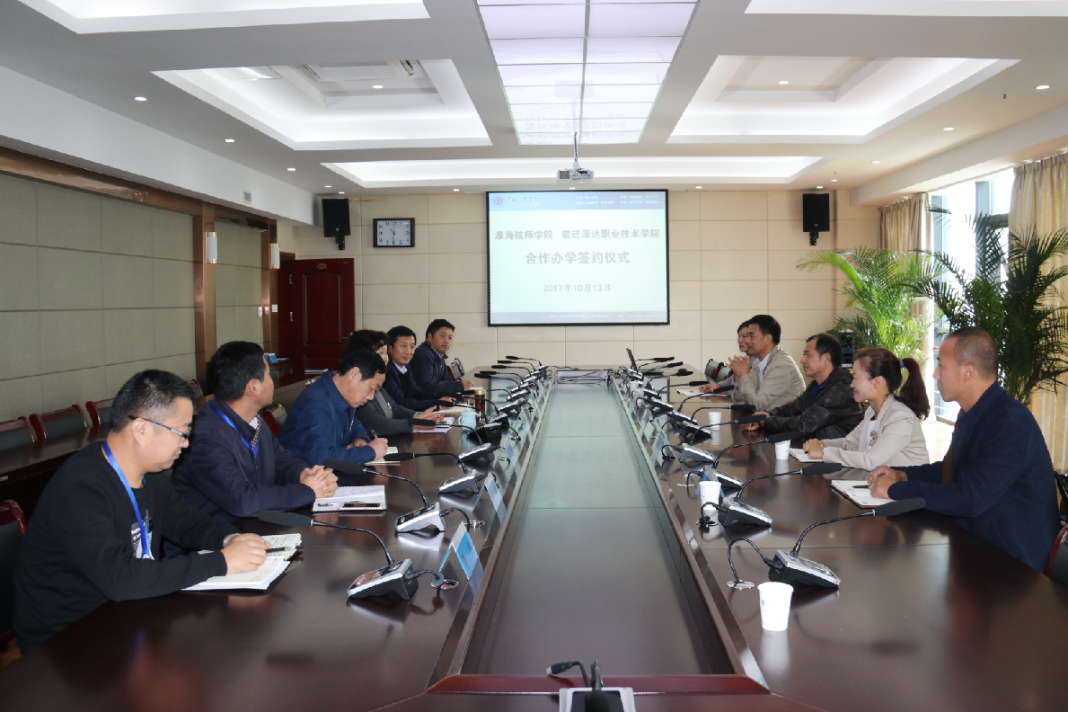 10月13日上午,宿迁泽达职业技术学院董事长王益民、党委书记葛高元等一行5人来我院就双方合作办学事宜进一步洽谈,并签订合作办学协议。我院党委书记、院长张莉,党委副书记、副院长张兵营,党委委员、副院长王治、纪委书记胡方军,院委会成员及相关负责人出席了签约仪式。
