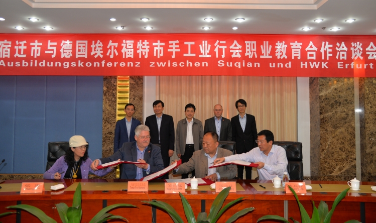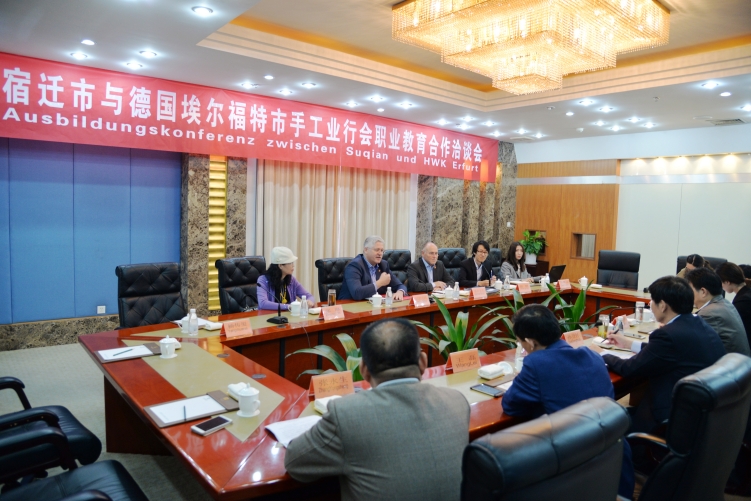就落实好中德合作,张兵营院长提出了五点建议。一是合作双方应当提高交流的及时性,针对16级中德国际班因教学资源缺失而导致教学进度或教学效果未达预期的现实情况,双方应加强沟通,加快进度,务实推进,保证16级、17级中德国际班的教学实施科学、高效、向德国标准看齐。二是将赴德师资培训与中德国际班教学相结合,提高培训的针对性、实效性。三是在深化合作的持续性问题上,要确保我院16级、17级中德国际班学生毕业后入德深造及取证(HWK)就业的顺利开展。四是结合近日我国在世界技能大赛的辉煌战绩,希望能就我院选派技能大赛种子选手入德集训或德方派遣师资来宿对我院选手开展培训等事宜展开密切协商,为我院我市的技能人才为国争光打下基础。五是建议埃尔福特手工业行会来宿投资,结合前期合作成果,兴建考证、培训中心(如汽车应用与维修专业),为中德双方长期持续合作打下坚实的基础。