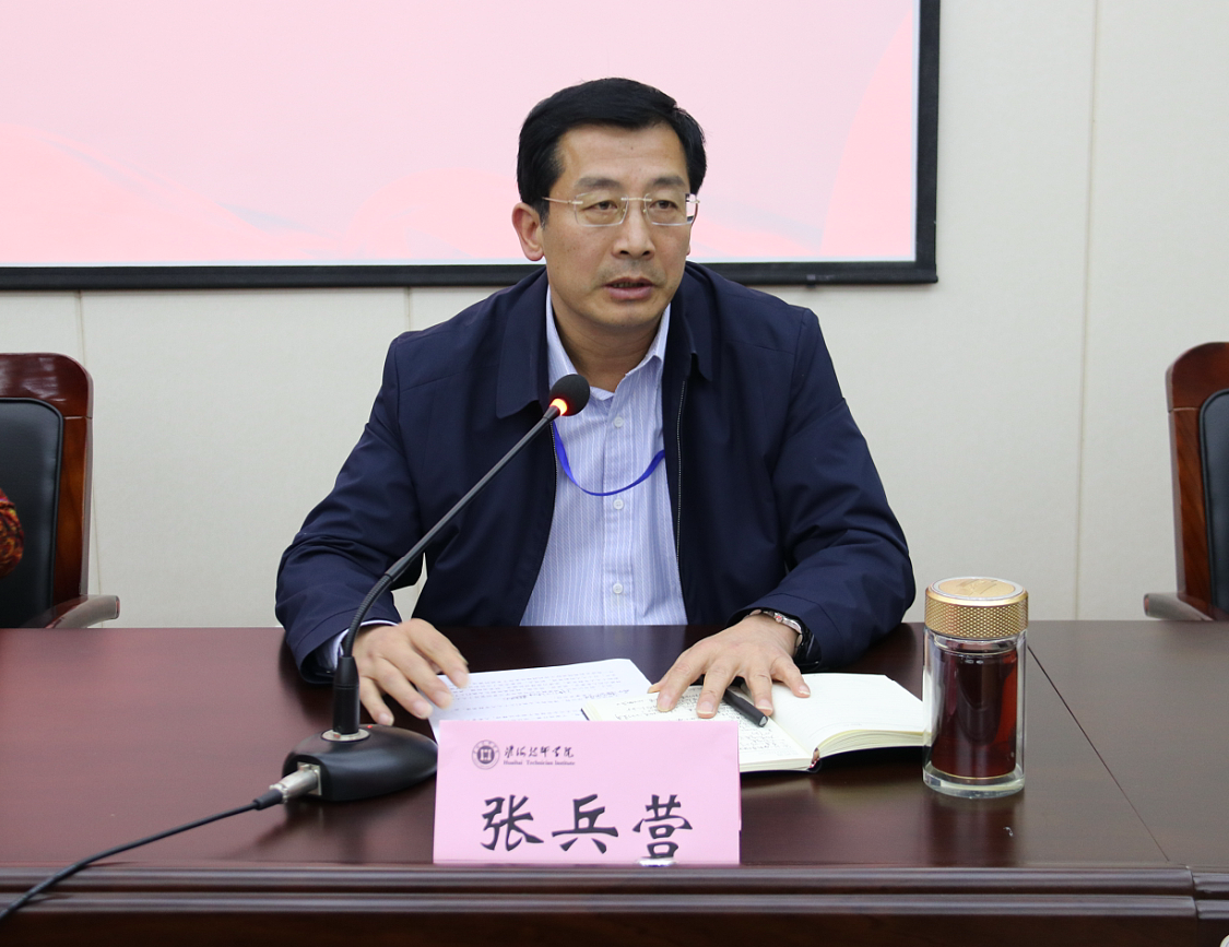 就如何学习贯彻落实十九大精神,张兵营提出了两点要求:一是要真正领会十九大精神实质。全院各党支部要积极组织开展十九大精神的学习,切实抓紧抓好。不光是党员、教干要学,全体教师都要学,人人学习、人人深入研究,学深学透。通过学习,真正把全院教职工的思想认识统一到十九大精神上来,真正将十九大精神溶解贯通到我院各项目标任务上来,增强我们的责任感、使命感,围绕学院建设目标的新要求和总体布局,进一步明确方向,创新发展。二是要真正贯彻落实十九大精神、学以致用。全体教职工要深入思考,切实以十九大精神指导我们的具体工作。要把总书记报告中“完善职业教育和培训体系,深化产教融合、校企合作”作为我们具体工作的指导方向;要把报告中“加强师德师风建设,培养高素质教师队伍,倡导全社会尊师重教”作为我们教师提高自身修养、提升师德师风、增强教学能力的根本要求。联系我们的工作实际,认真思考,加强研究,深入分析当前我院发展面临的形势,努力在学习研究中形成新思路,拿出新举措,力求新突破。