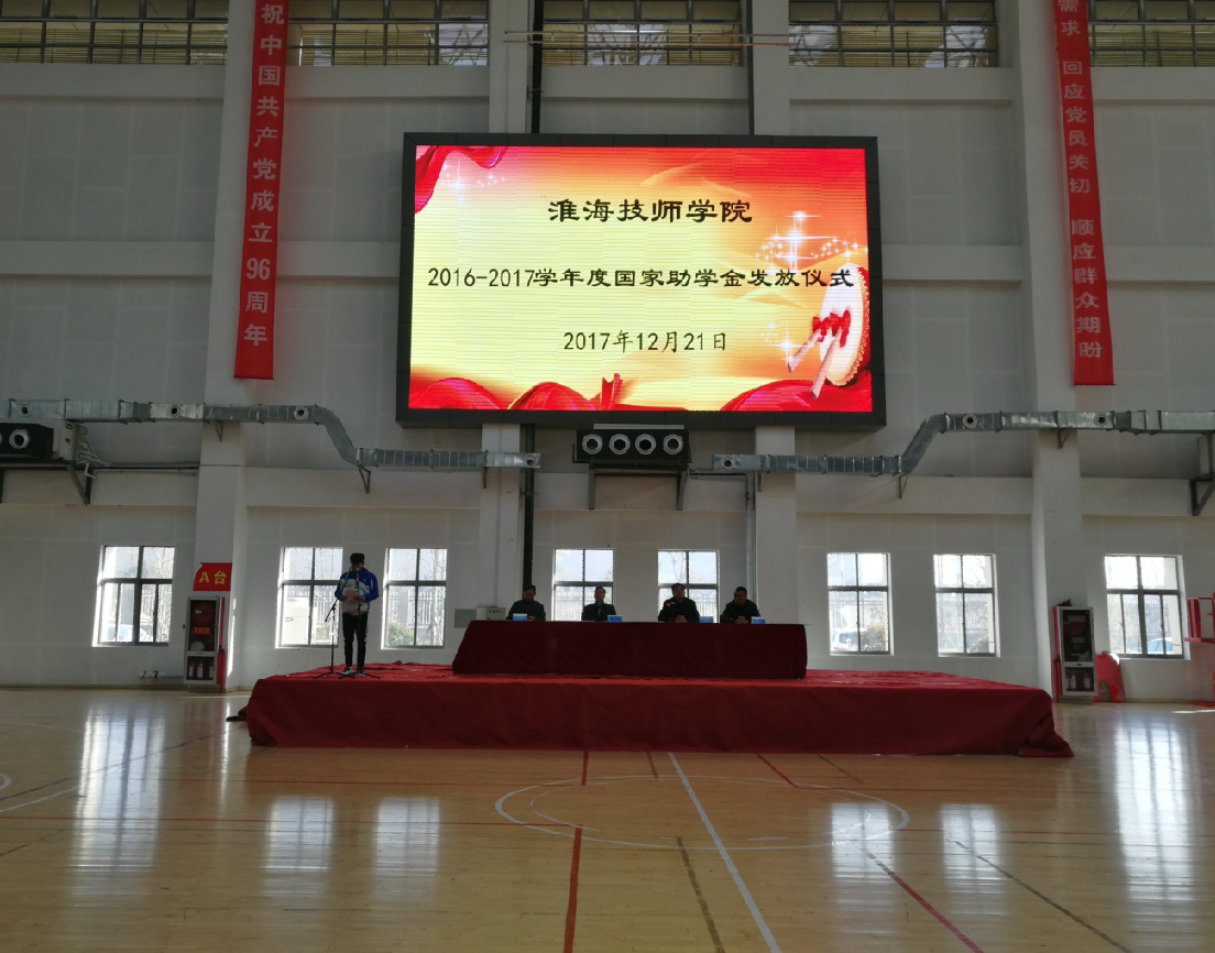 12月21日上午,我院在体育馆举行2016-2017学年度国家助学金发放仪式。院领导、全院师生以及受助学生家长参加了发放仪式。仪式由院委委员、党总支副书记胡柯主持。