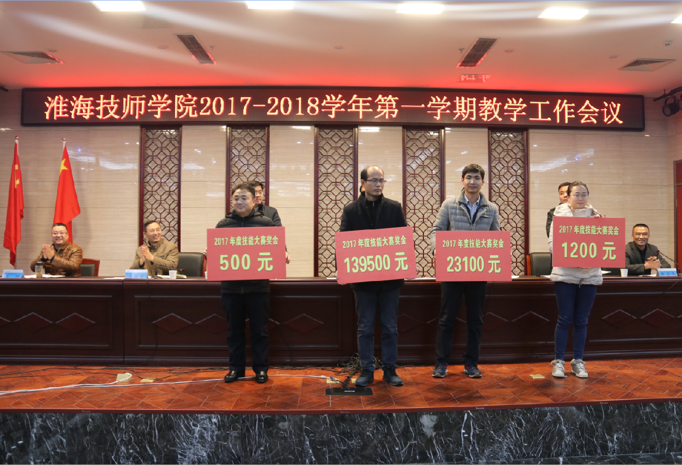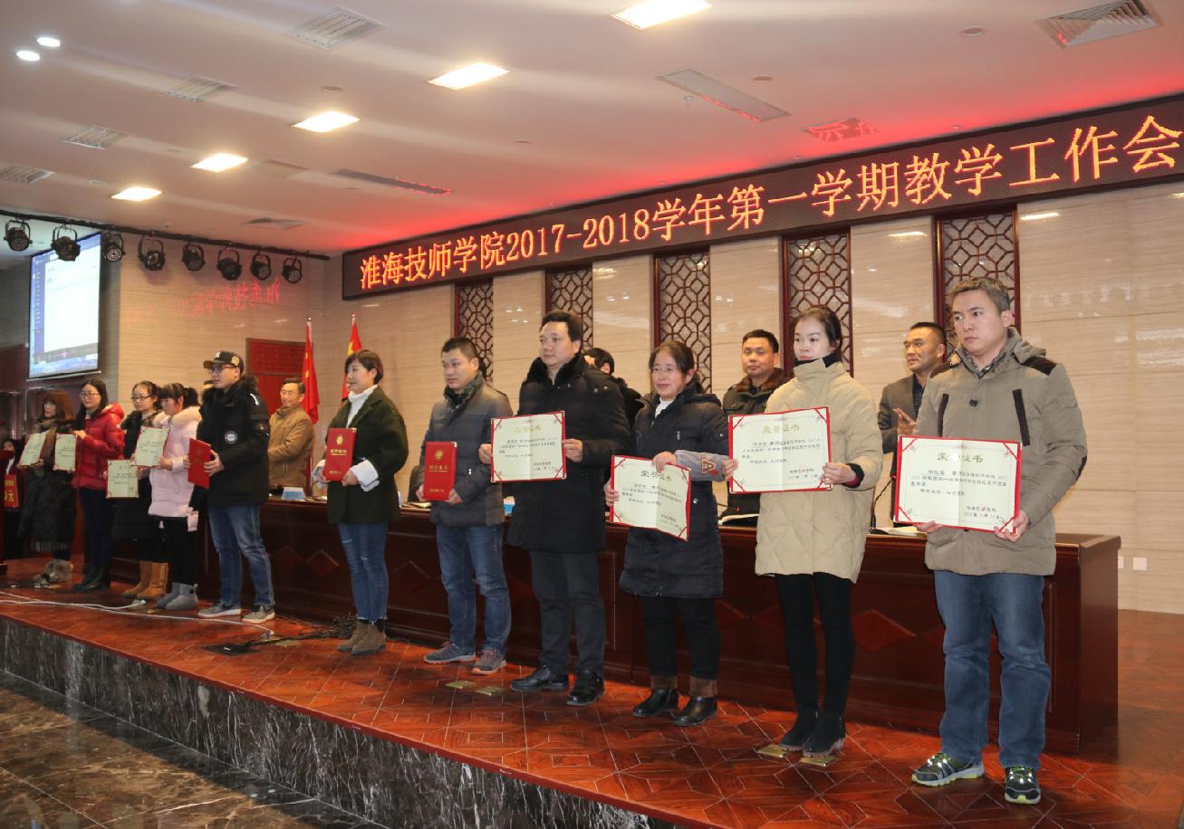 随后,会议对本学期院级示范课中获奖的12位教师和2017年度各类技能大赛成绩突出的系部进行了表彰,院领导为获奖教师和系部颁发了证书和奖金。