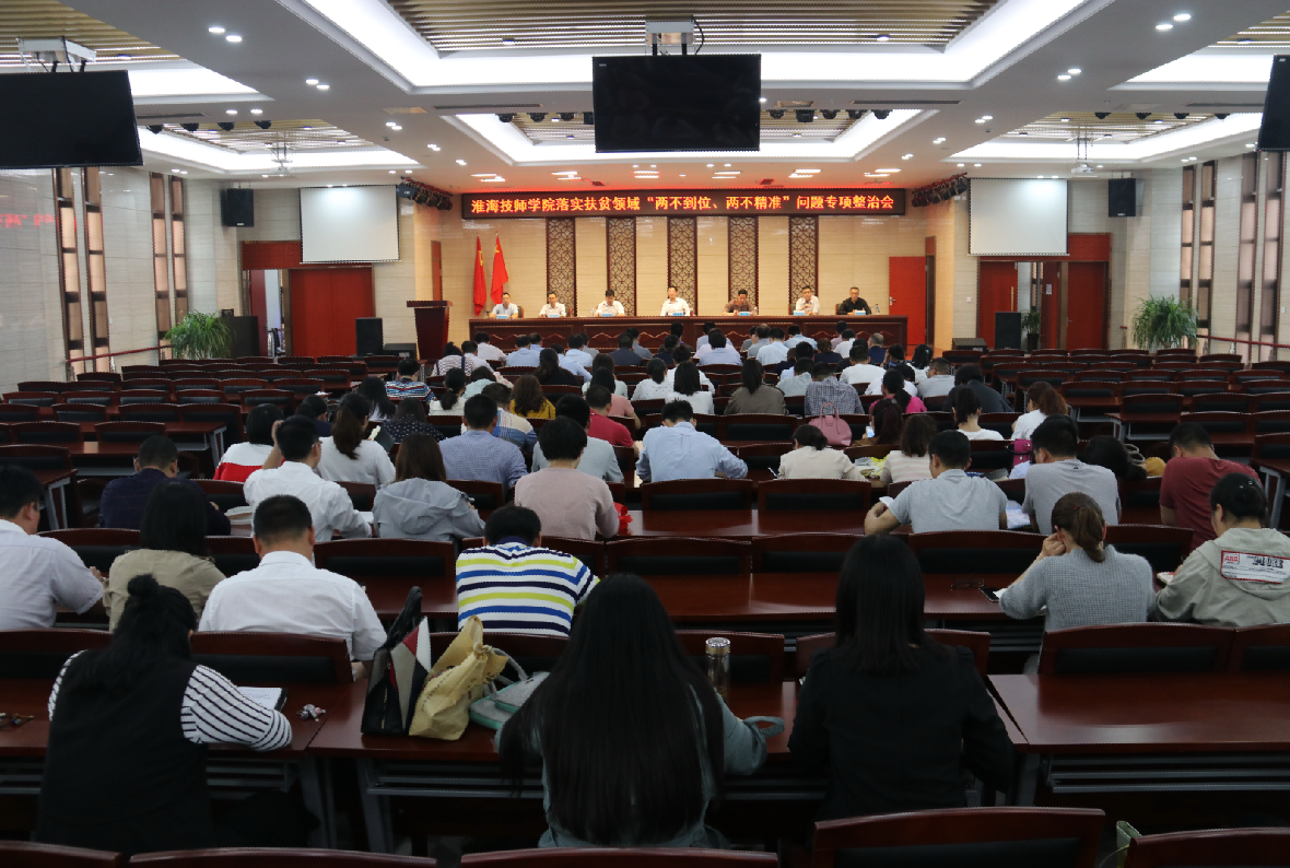会议通报了学院扶贫工作开展情况,指出了存在的走访不到位、政策讲解不到位、信息录入不准确、帮扶措施不到位等突出问题,并传达了全市关于开展扶贫领域“两不到位、两不精准”问题专项整治的工作方案精神。