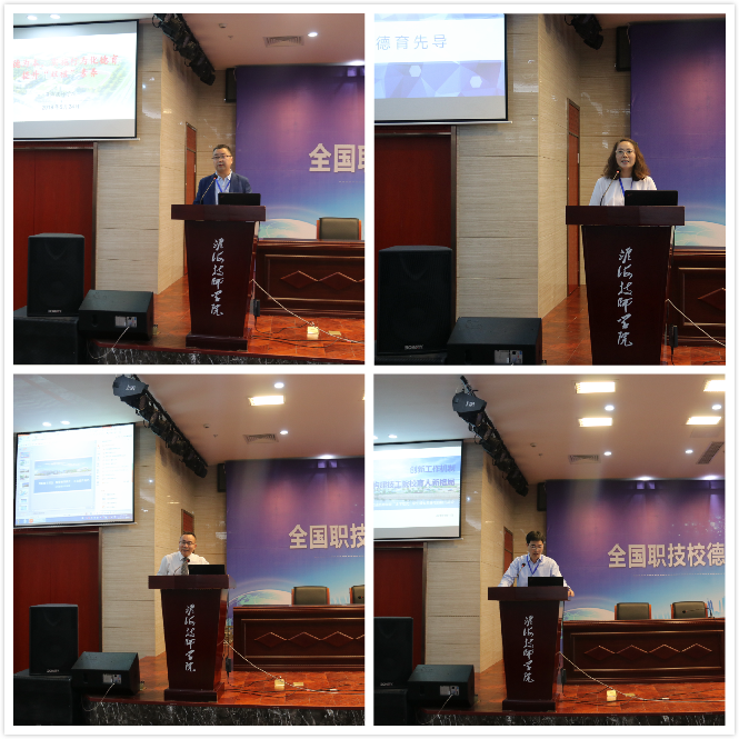 开幕式结束后,淮海技师学院、浙江桐乡技师学院、云南楚雄技师学院和浙江交通技师学院四所院校代表分别作了德育管理专题报告,大家纷纷亮出家底,立足于本单位德育管理现状、措施、成效以及存在的问题与思考等方面进行了充分的交流和讨论。
