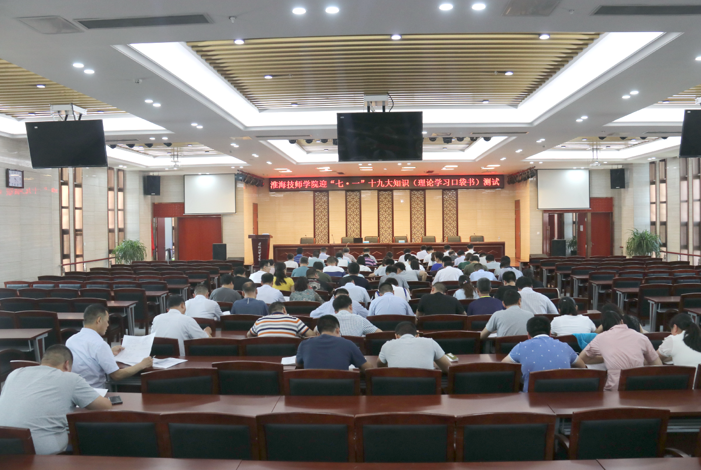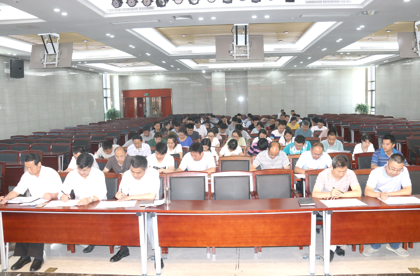 自《理论学习口袋书》下发后,学院各党支部积极组织党员开展集中学习、自主学习,认真钻研党的十九大精神和习近平新时代中国特色社会主义思想等内容。此次知识测试采取闭卷的方式进行,测试内容主要包括十九大会议精神、习近平新时代中国特色社会主义思想、高质量发展、中华民族精神等方面,设置了单选题、多选题、简答题和论述题。测试现场,全体党员干部认真思考作答。