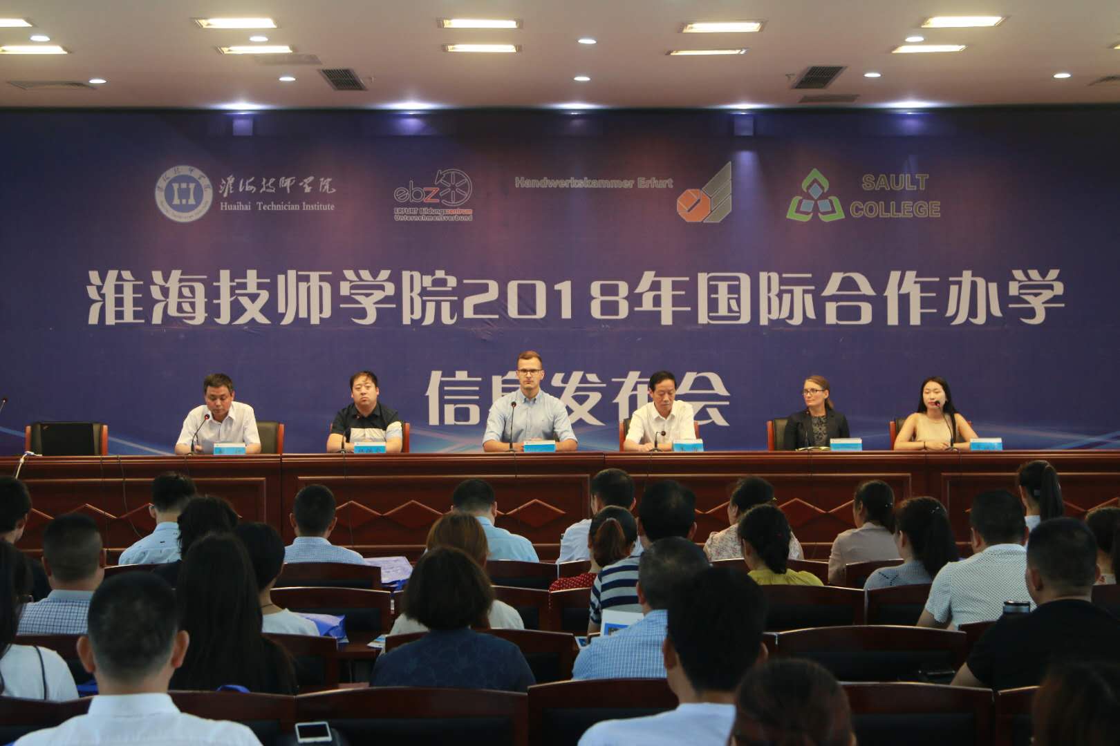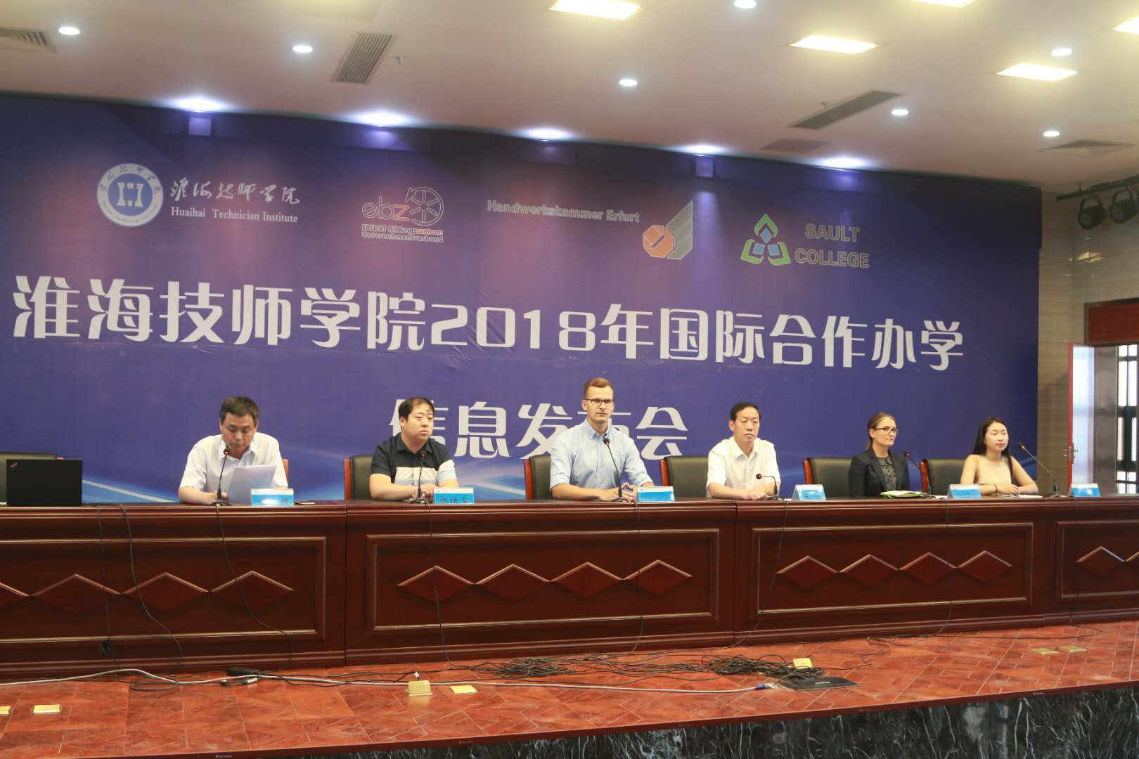 为贯彻落实省人社厅中外合作办学引进国际职业资格的相关要求,积极响应市委市政府推进与国际职业教育合作的工作部署,6月23日上午,我院举行2018年国际合作办学信息发布会。淮海技师学院中德国际班学生、家长以及有意就读国际班的学生家长参加了发布会。我院党委成员、副院长王治主持发布会。