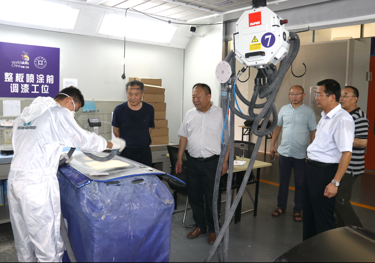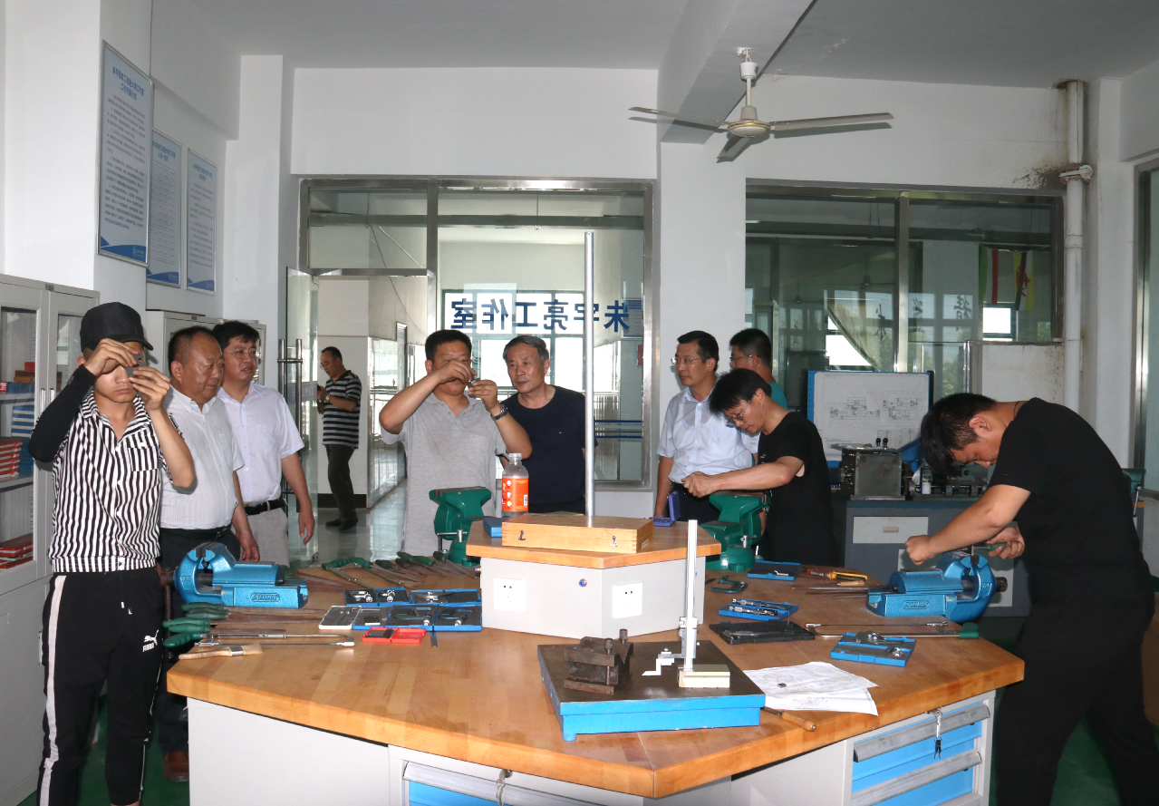 伏广廷一行先后参观了学院机器人实训中心、机电实训中心、数控加工实训中心、机械加工实训中心、财会实训中心、汽车检测与维修实训中心、国家技能大师工作室等地。张兵营向考察组一行介绍了学院的教学、管理情况以及实训基地建设、教学改革、社会培训、技能大赛、中外合作等方面工作的做法和取得的成绩。