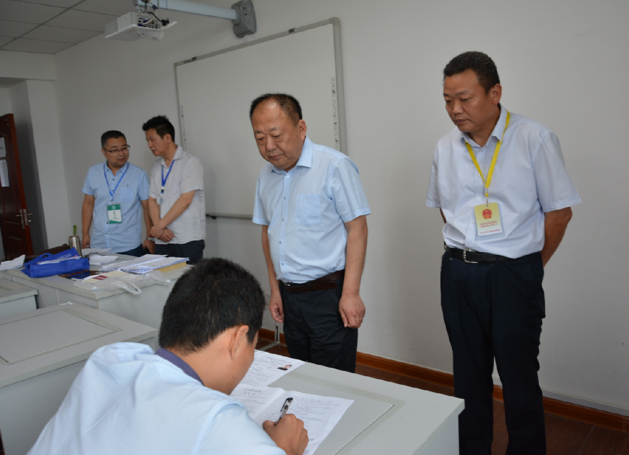 考试过程中,市人社局党组成员、市考试鉴定中心主任张永生,市人社局事业单位管理处陈金全处长、市考试鉴定中心职业技能鉴定科田野科长,我院院委委员、培训处李刚处长等,深入考试现场进行检查巡视,仔细检查了考场秩序、监考教师履职、考生人数、考生答卷等情况。