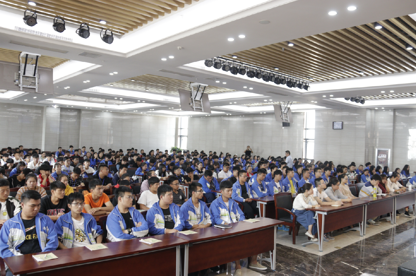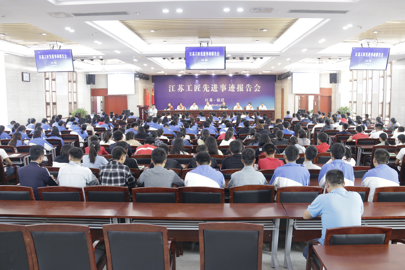 据悉,为充分发挥江苏大工匠、江苏工匠的示范引领作用,弘扬新时代劳模精神和工匠精神,营造全省上下崇尚技能、尊重人才的社会氛围,省人社厅从104名江苏技能大奖获得者中遴选24名同志组成巡回报告团在全省各市开展江苏工匠先进事迹巡回报告活动。本场报告会,是报告团在宿迁京东公司报告会后的第二场。“江苏工匠”等优秀技能人才是我省的宝贵财富,是推动社会、企业创新发展的顶梁柱、带头人,聆听他们的感人事迹,学习好、宣传好、传承好工匠的先进事迹,对激励和引导广大师生学技术、比技能、强素质将起到积极的推动作用,也将进一步营造全社会“尊重劳动,崇尚技能,鼓励创造”的良好氛围。